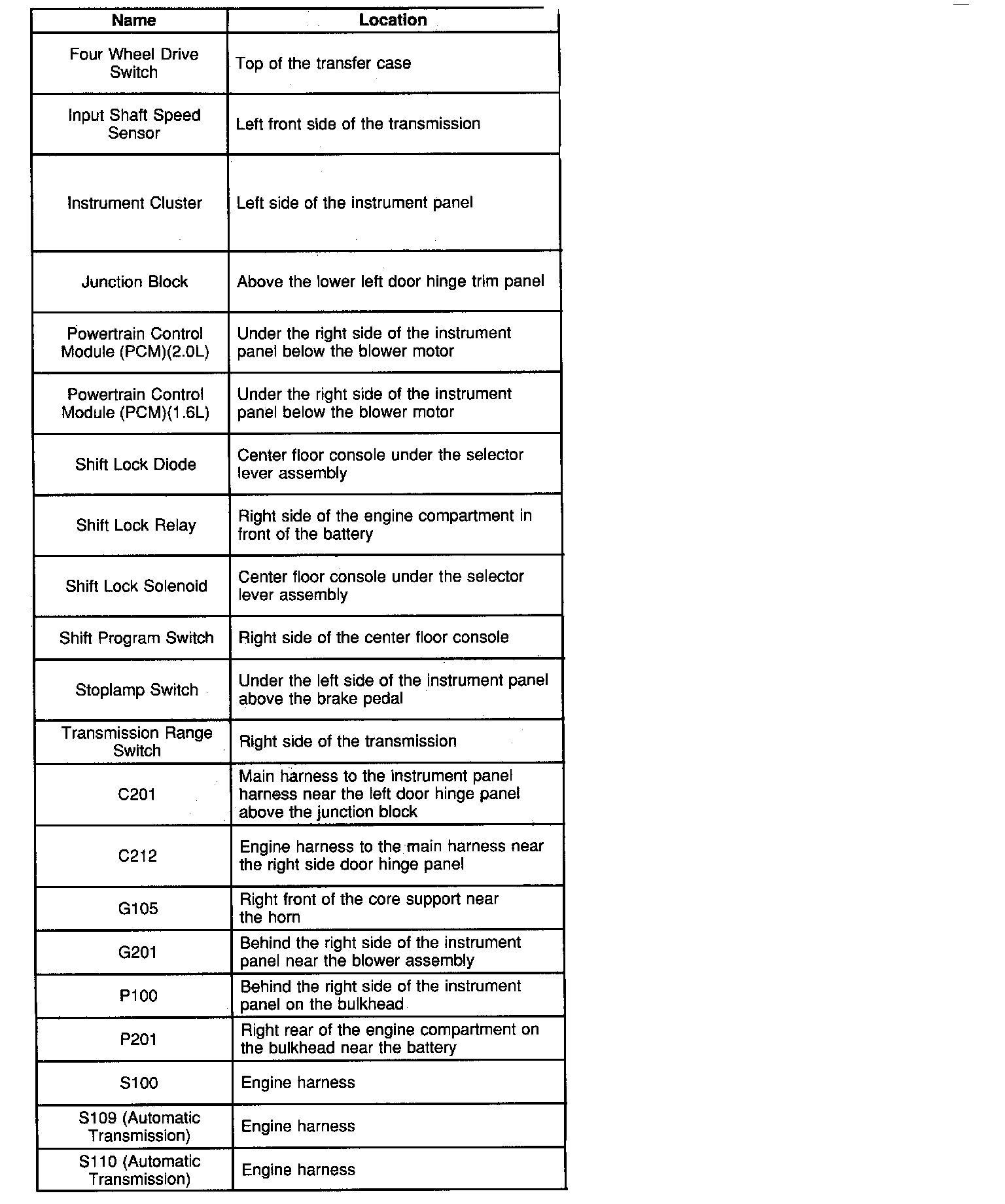 Tracker 2WD L4-2.0L VIN C