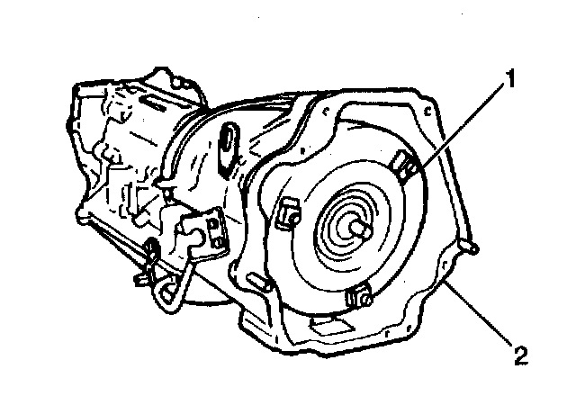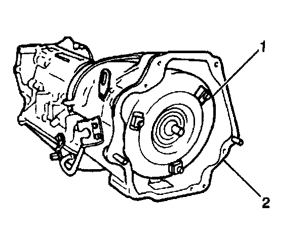 2. Remove the torque converter (1) from transmission.