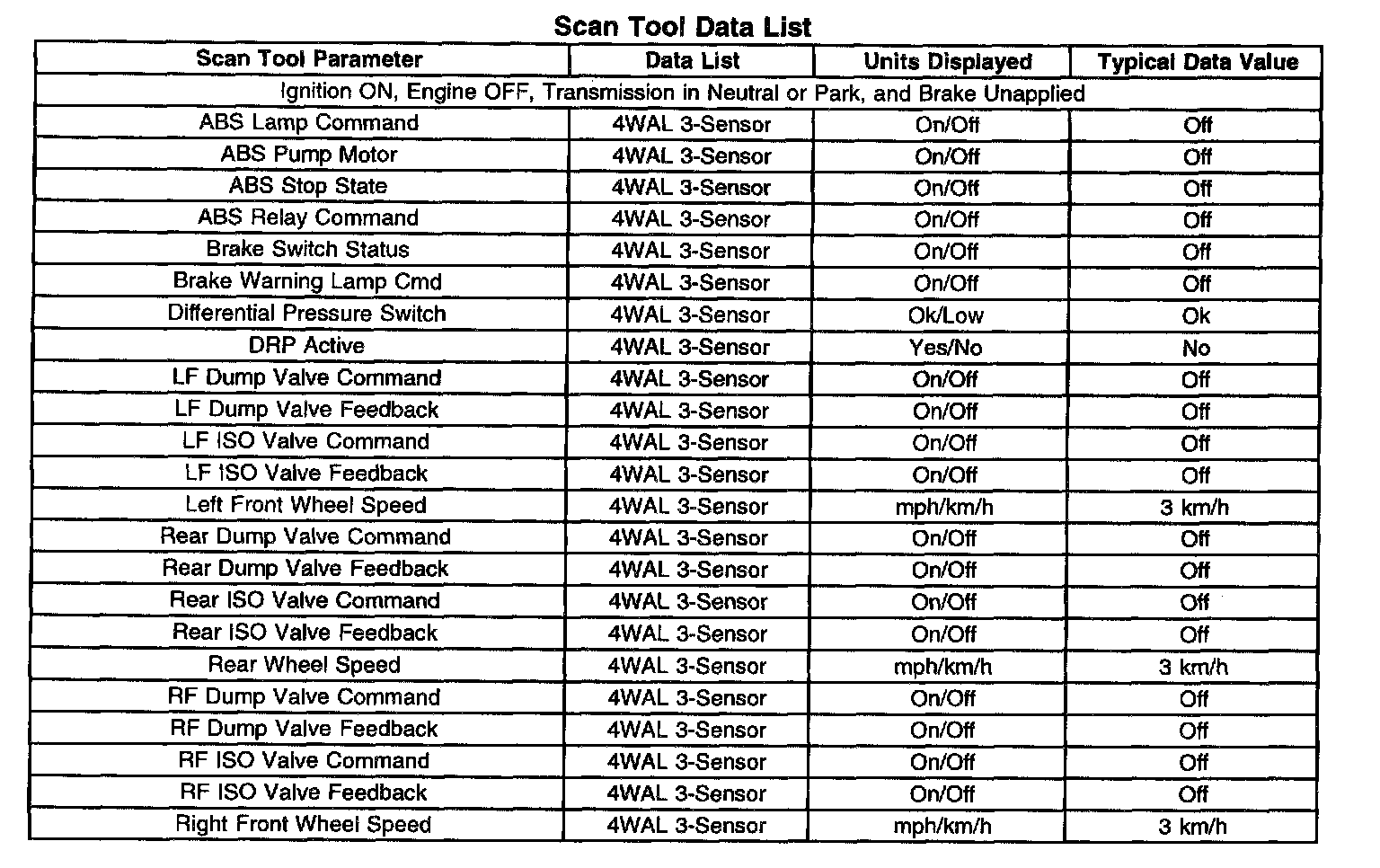 Scan Tool Data List