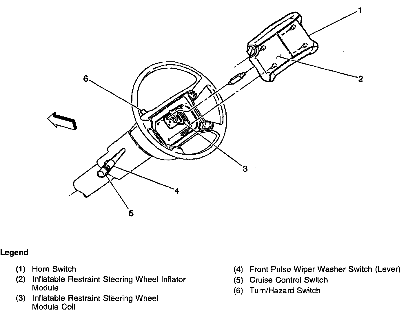 In the center of the steering wheel