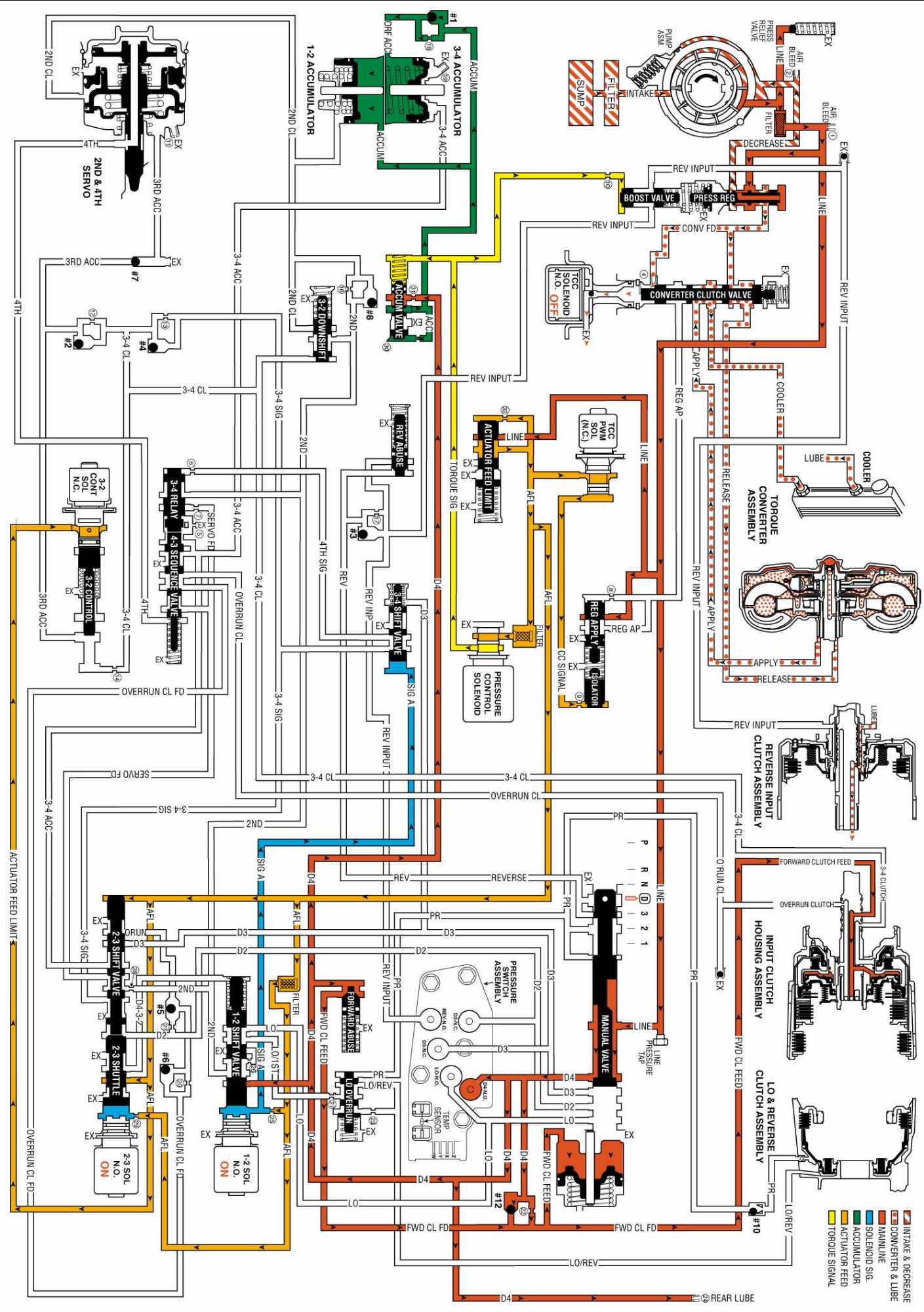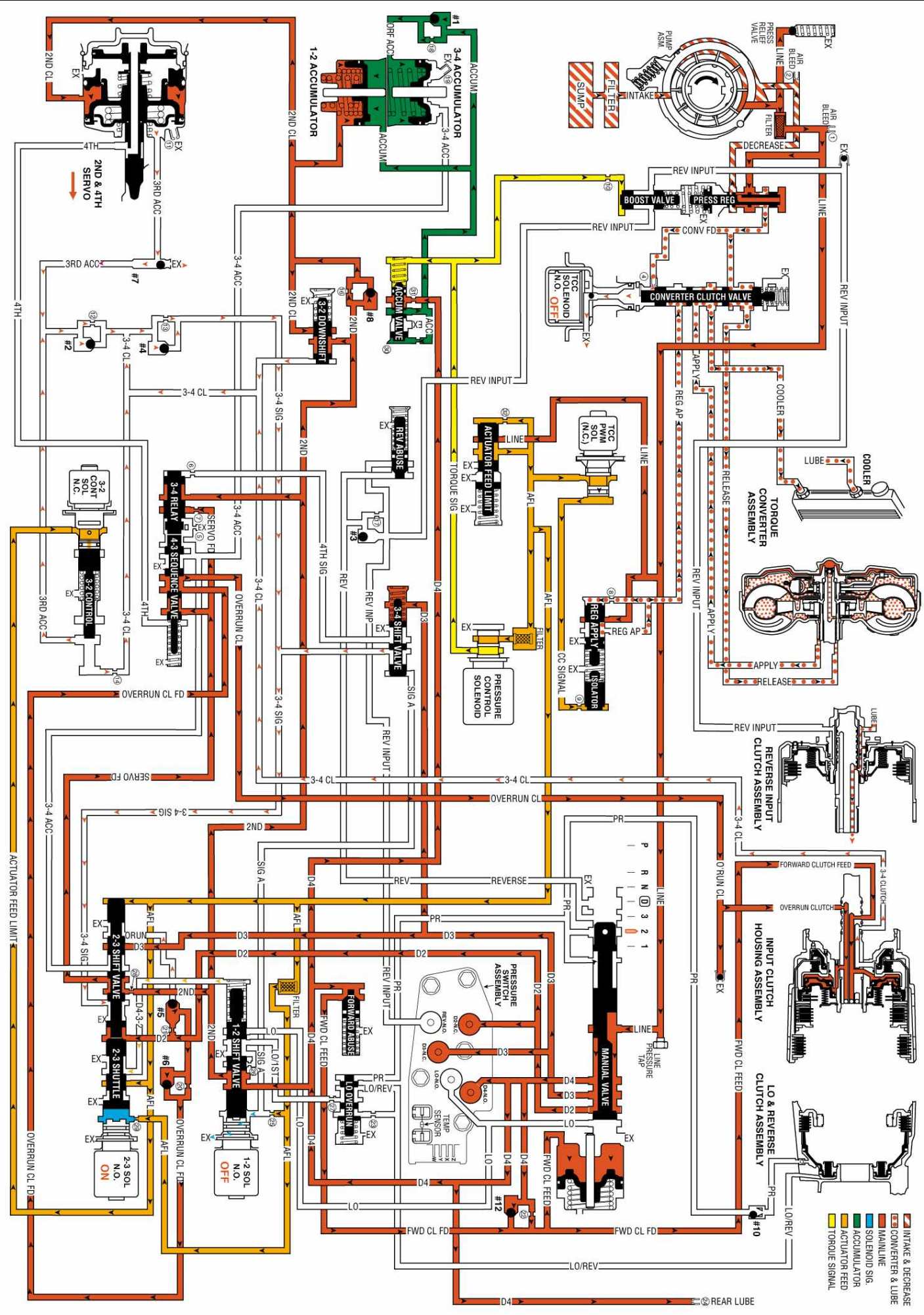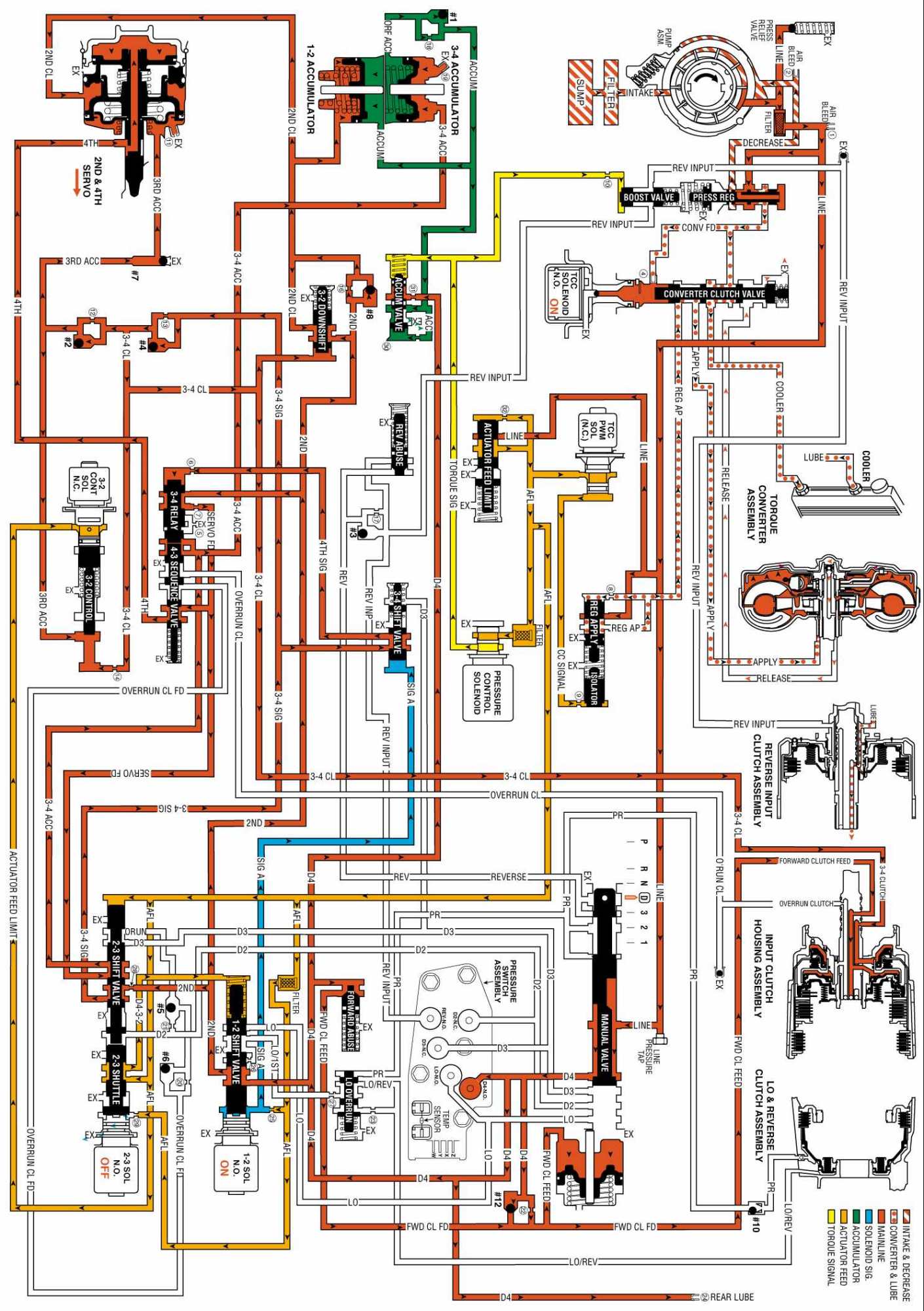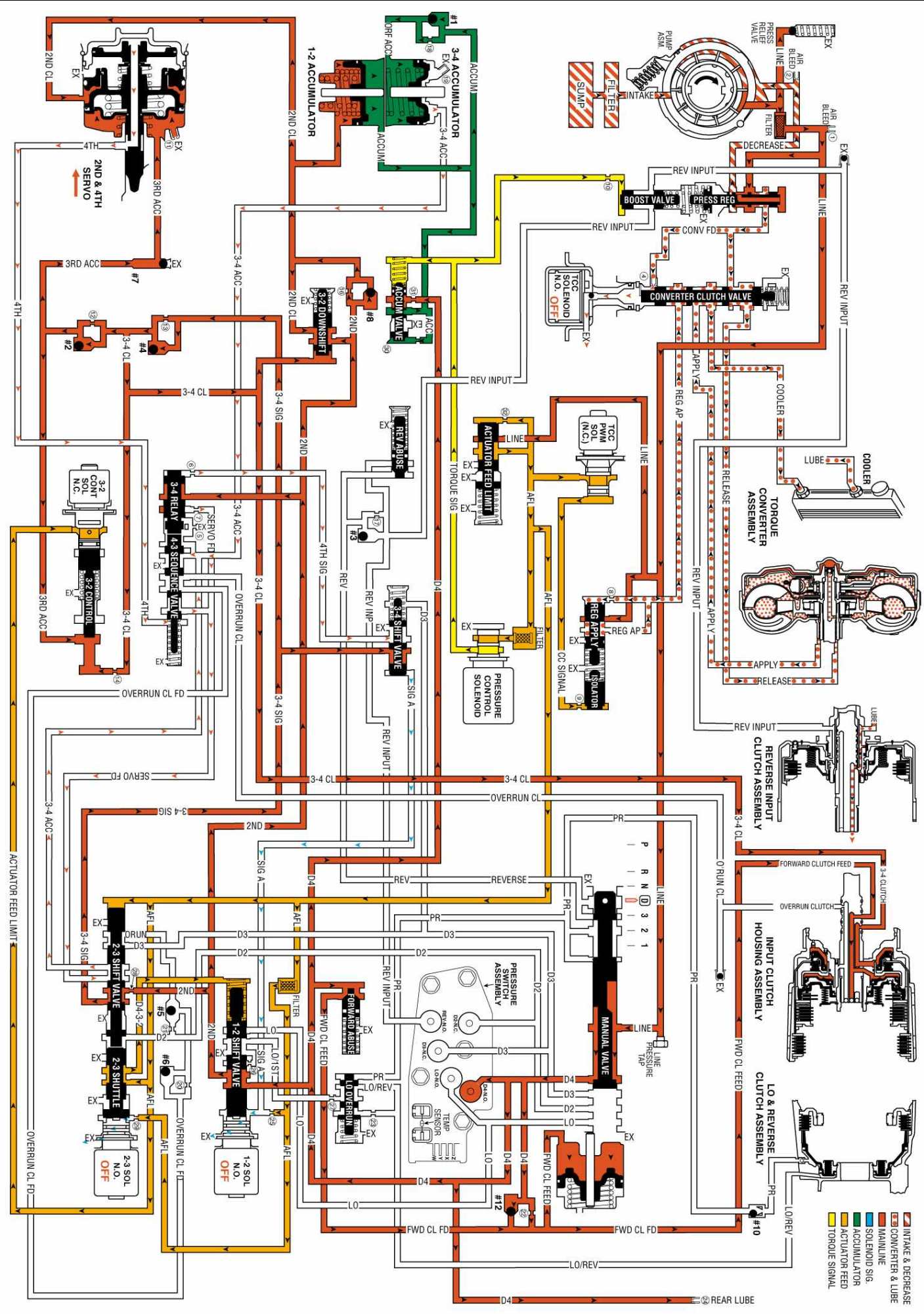 OVERDRIVE RANGE, FOURTH GEAR - TORQUE CONVERTER CLUTCH (TCC) APPLIED: