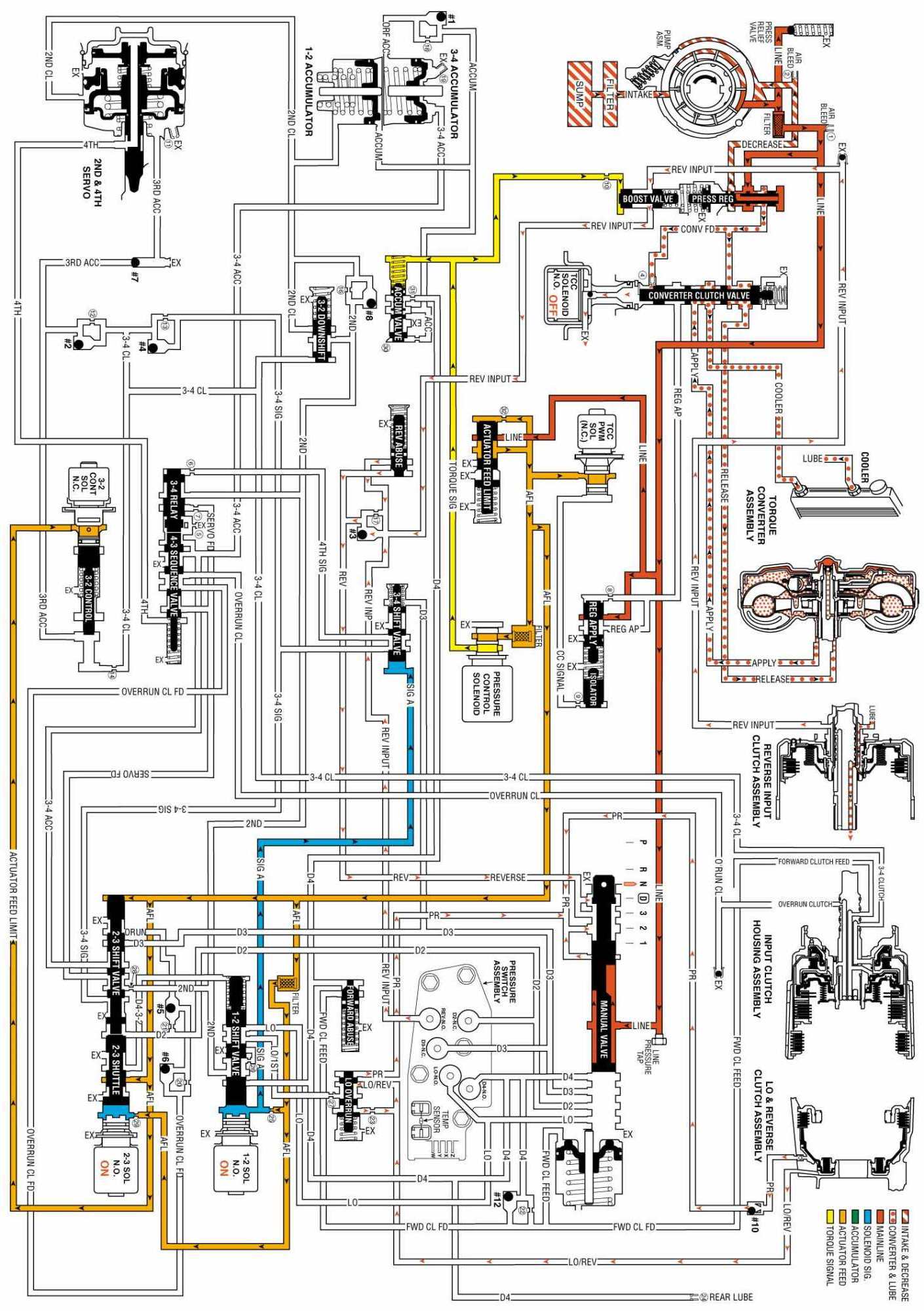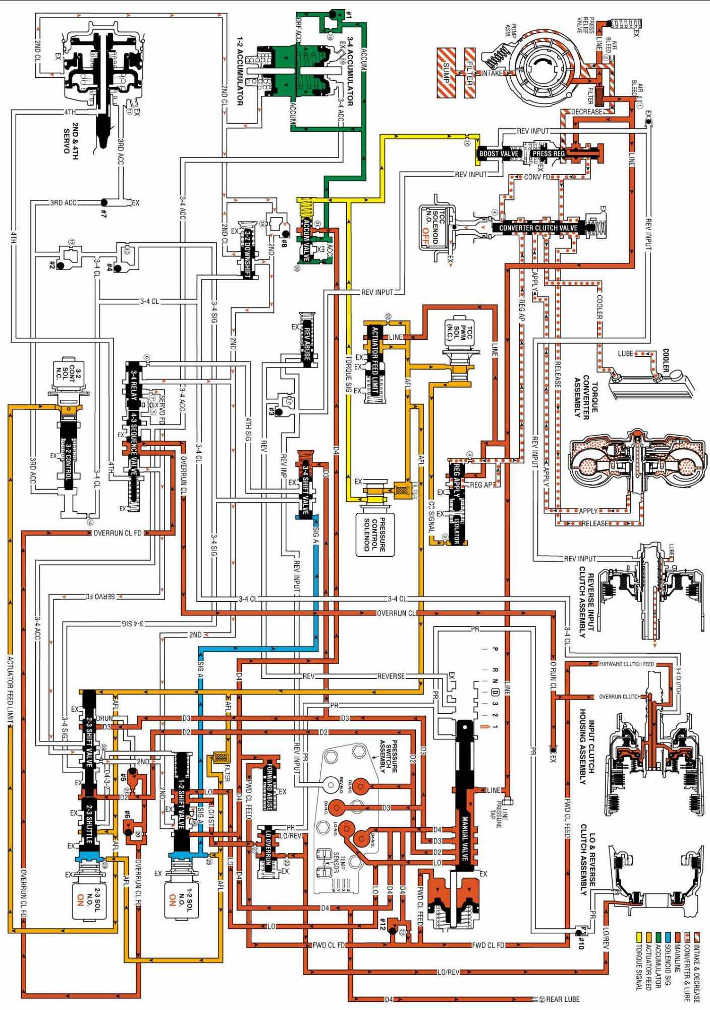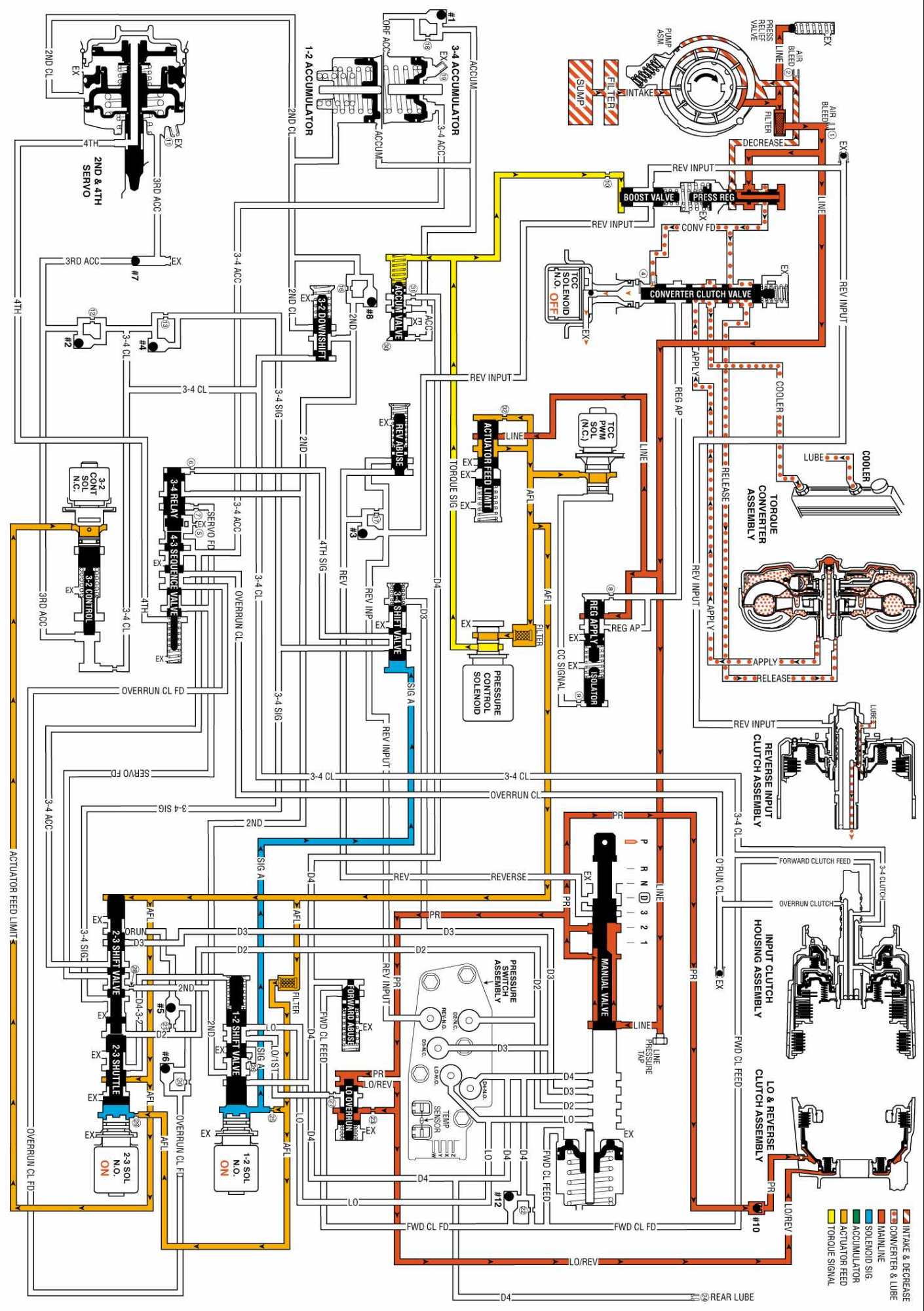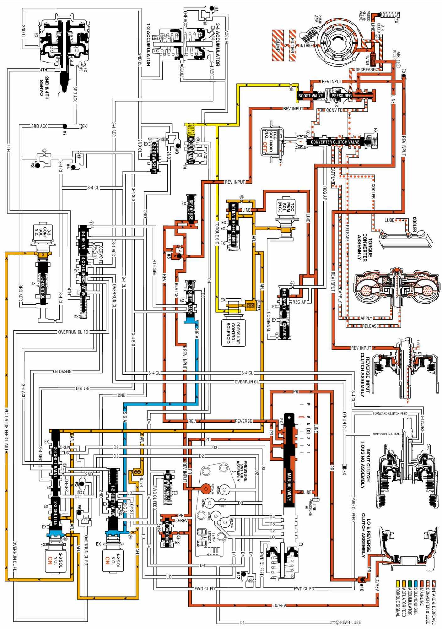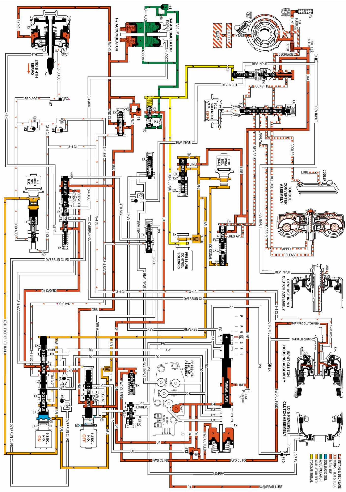 OVERDRIVE RANGE, FOURTH GEAR - TORQUE CONVERTER CLUTCH (TCC) APPLIED:
