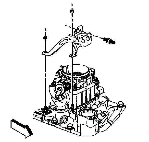 14. Install the transmission fluid fill tube and bolt to the accelerator control cable bracket.