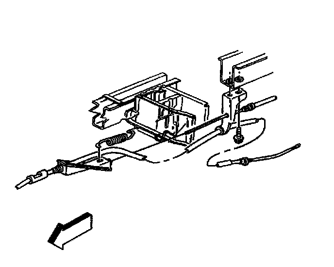 Caution: In order to avoid possible injury or vehicle damage, always replace the accelerator control cable with a NEW cable whenever you remove the engine from the vehicle. In order to avoid cruise control cable damage, position the cable out of the way while you remove or install the engine. Do not pry or lean against the cruise control cable and do not kink the cable. You must replace a damaged cable.