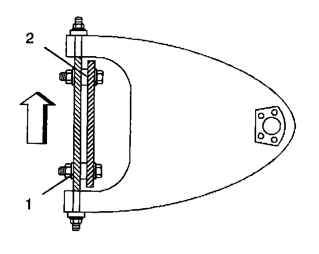 3. If the camber is not within specification, adjust the camber by changing the shims at both the front and the rear of the shaft. Add or subtract the shims (2) as required.