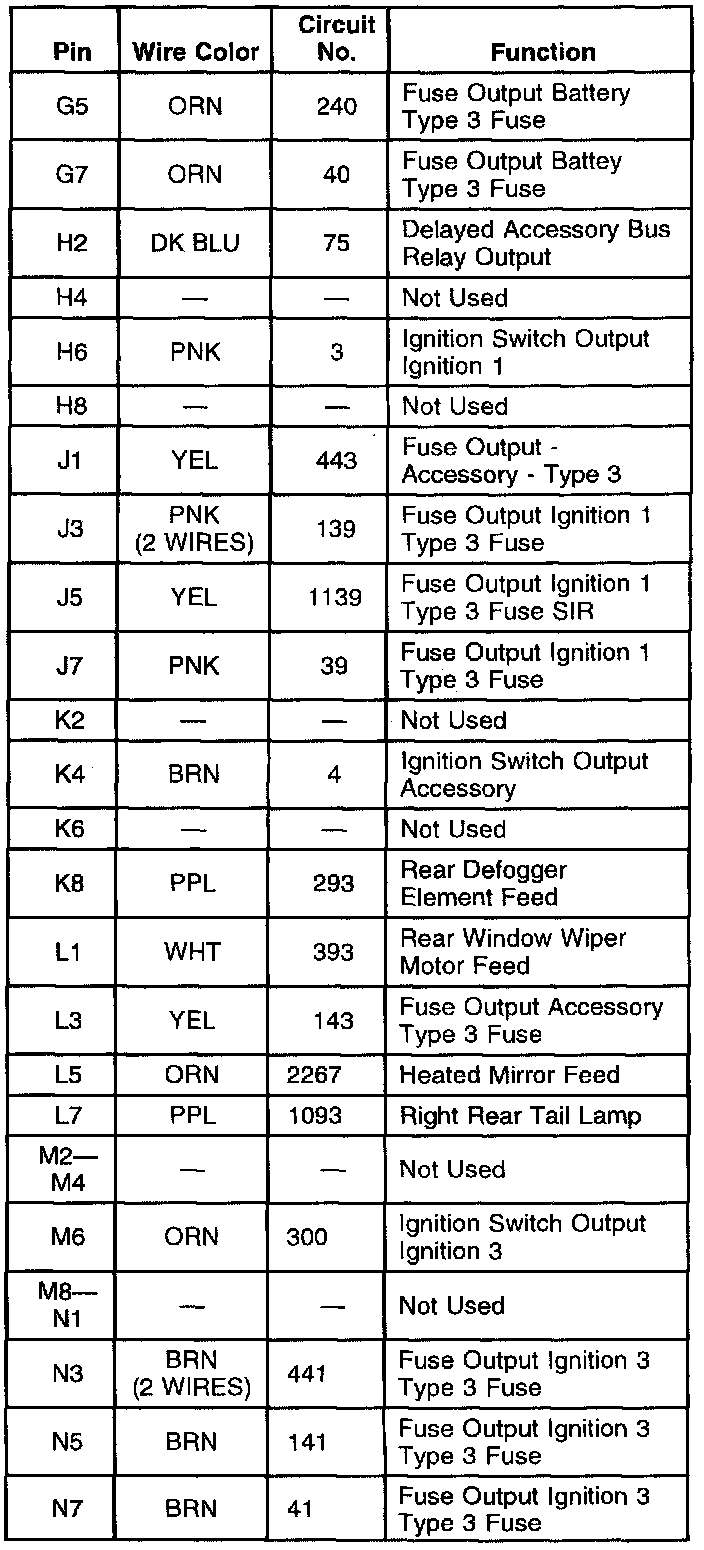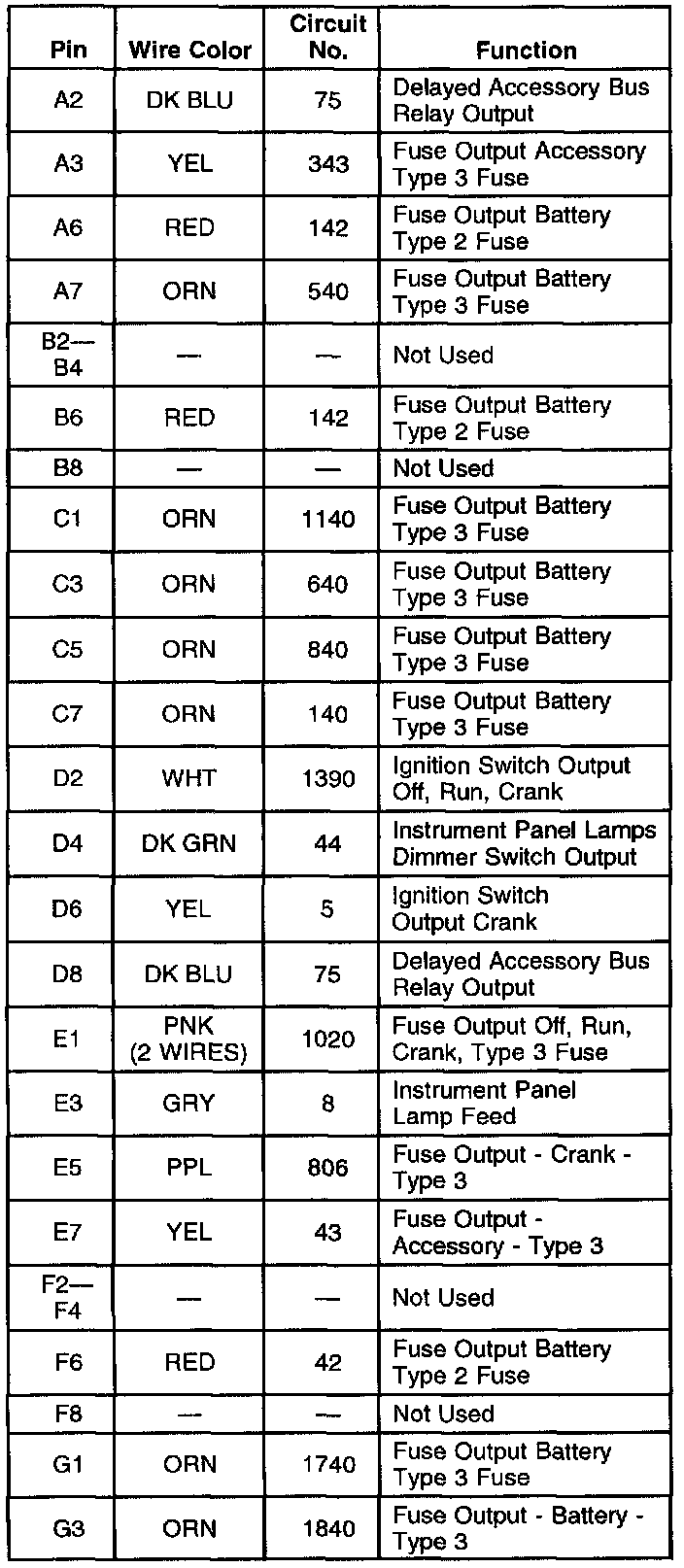 I/P Fuse Block (Rear View) (Part 2 Of 2):