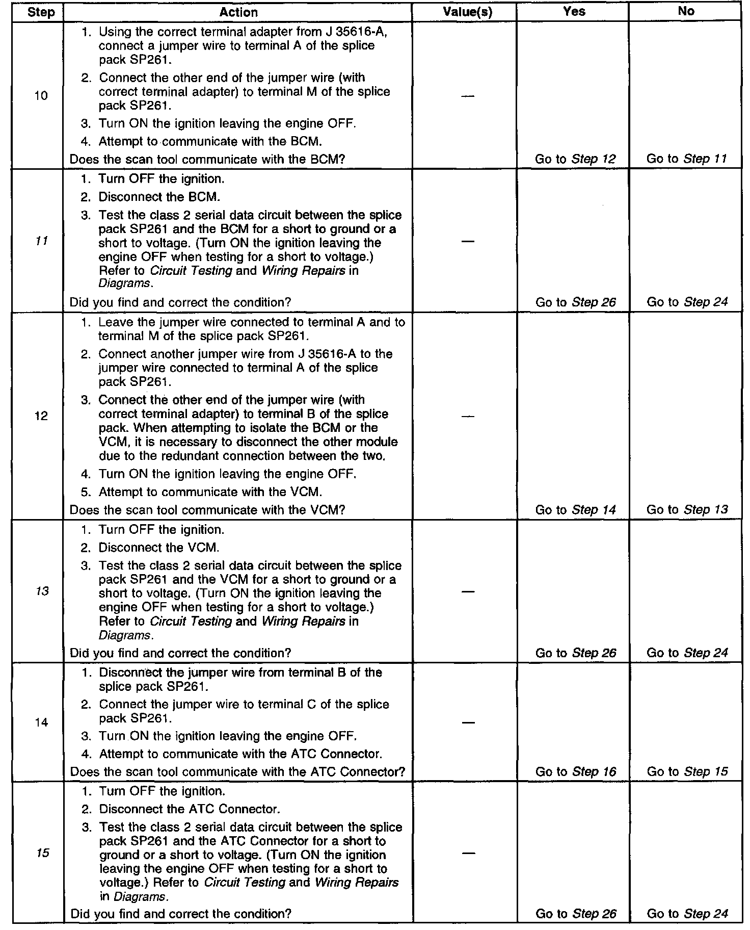 15. This test isolates the EBCM class 2 serial data circuit.