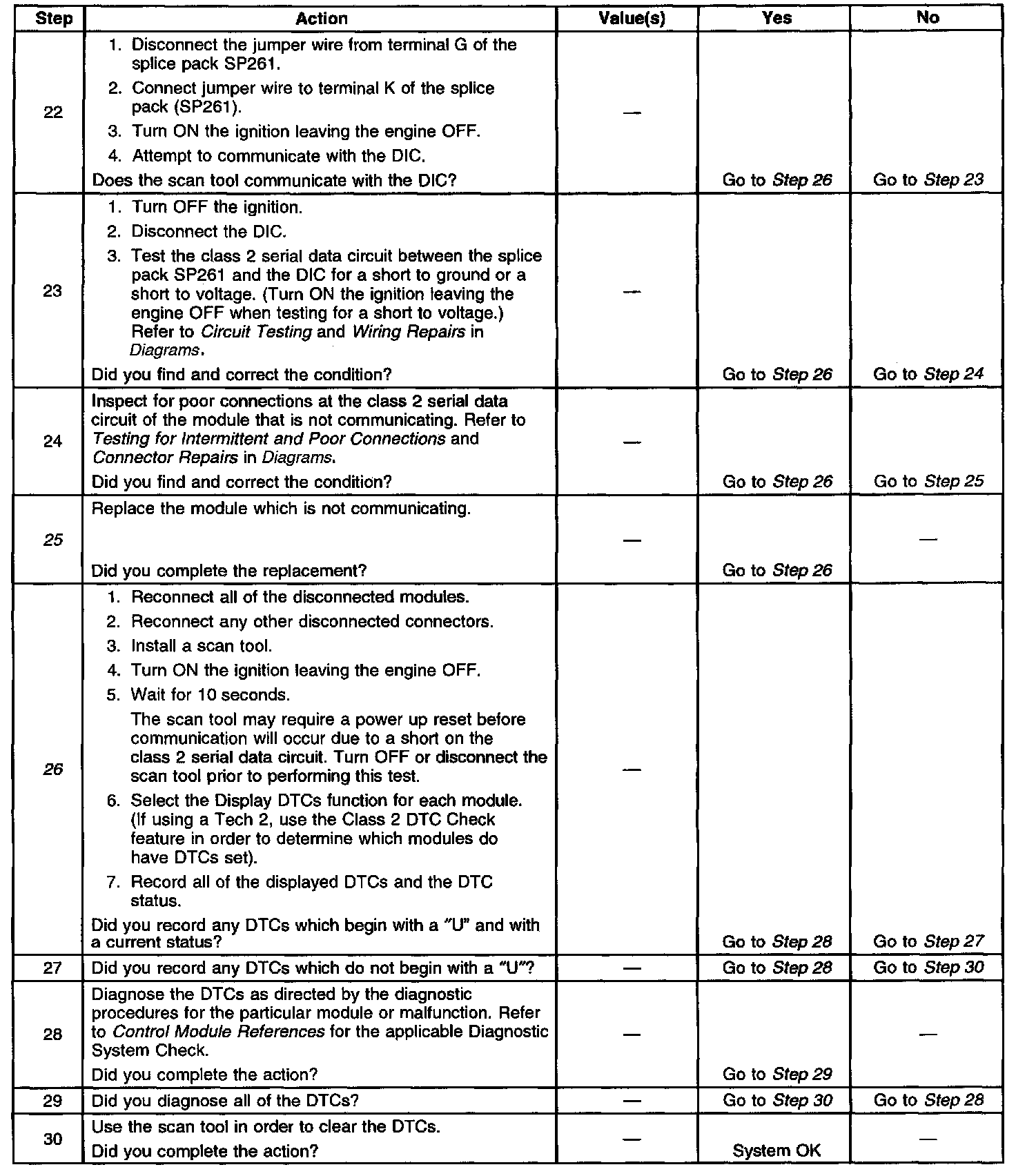 ^ When the class 2 serial data circuit is shorted to ground, U1300 or U1305 will be set. Refer to DTC U1300 Class 2 Data Link Low or DTC U1305 Class 2 Data Link Low or High.