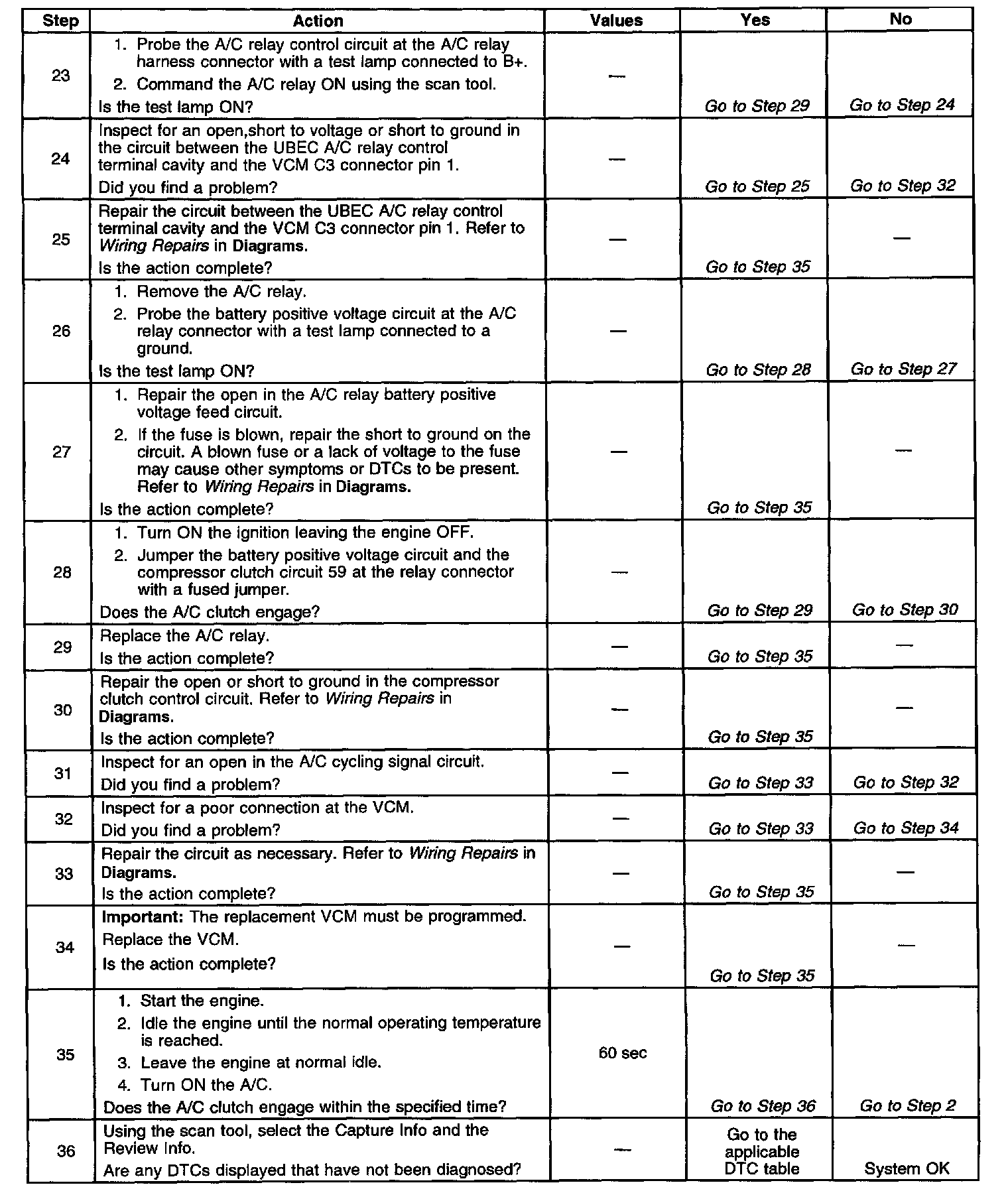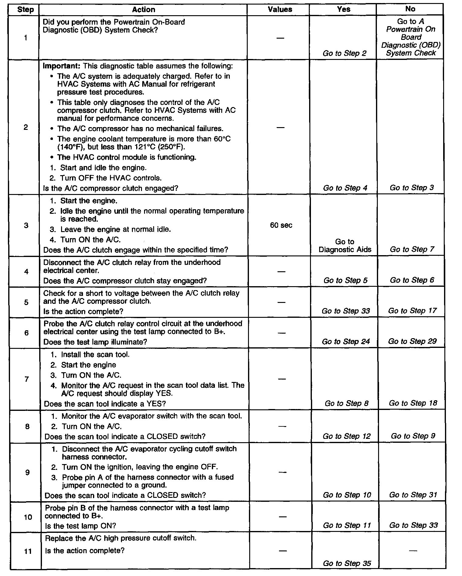 If the air conditioning system seems to be operating correctly at this time, inspect the following: