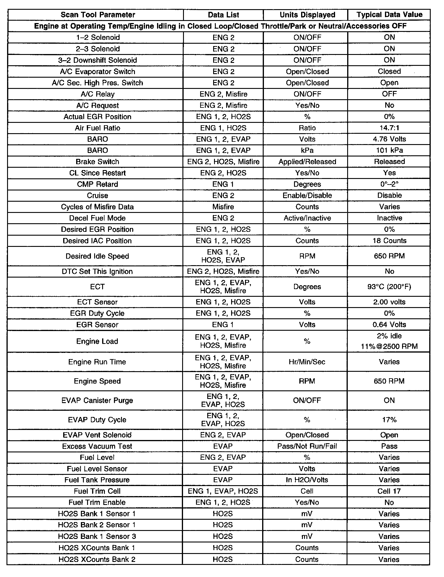 Scan Tool Data Display(Part 2 Of 3):