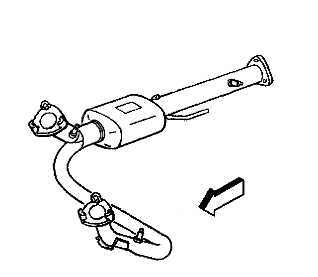 13. Remove the catalytic converter assembly from the vehicle by rotating the assembly over the rear of the transmission crossmember.