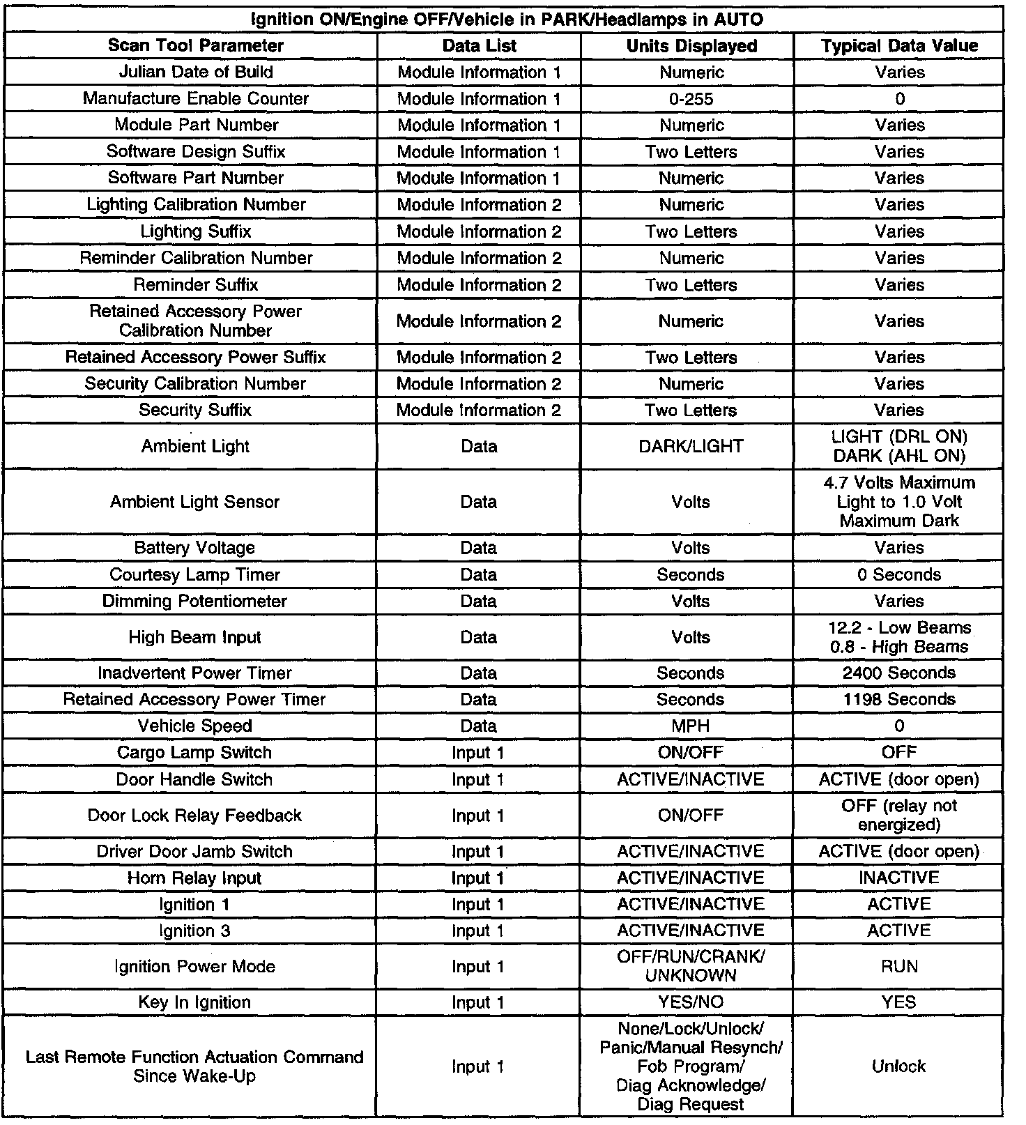 Scan Tool Data List (Part 3 of 3):