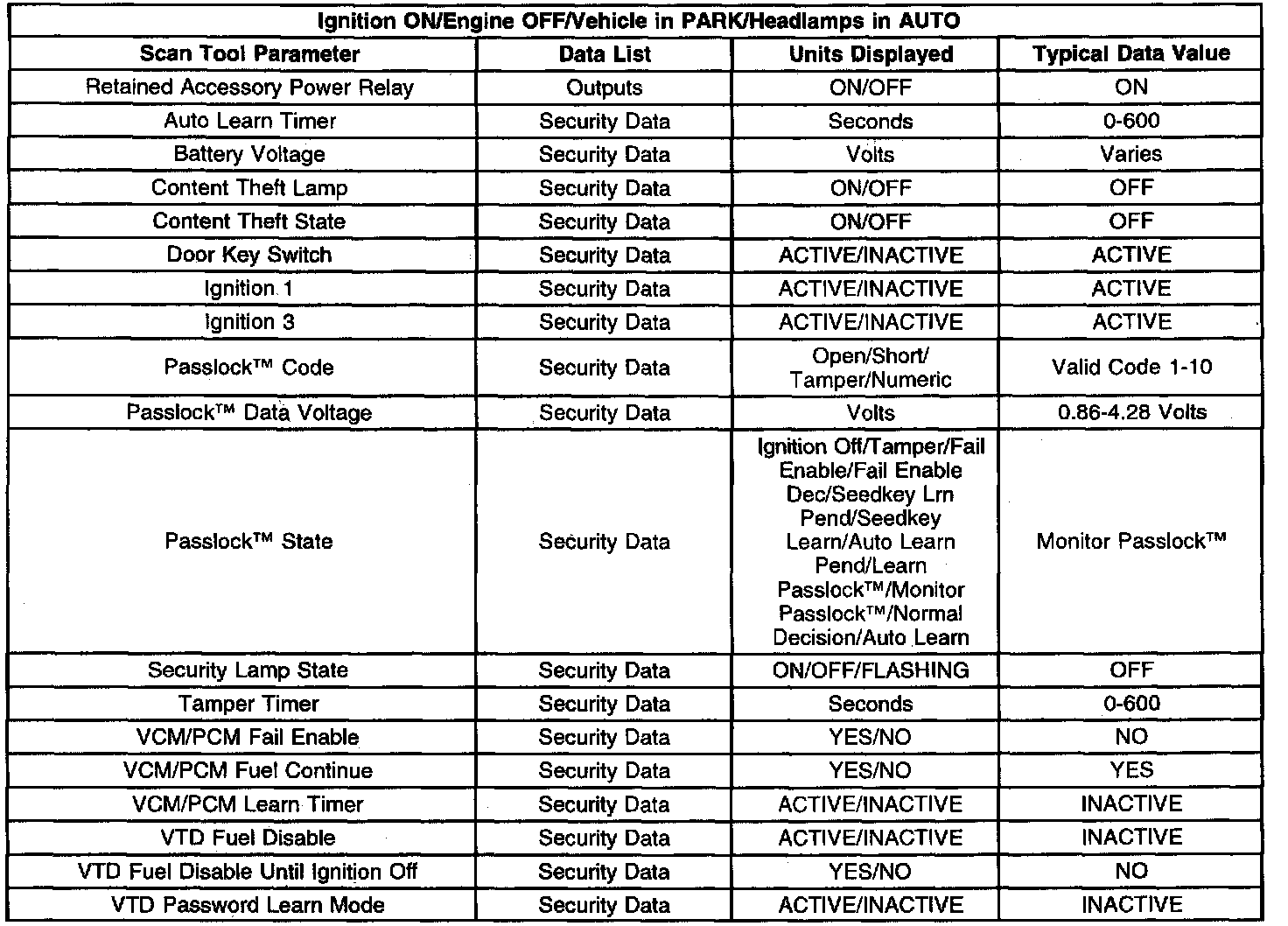 Scan Tool Data List