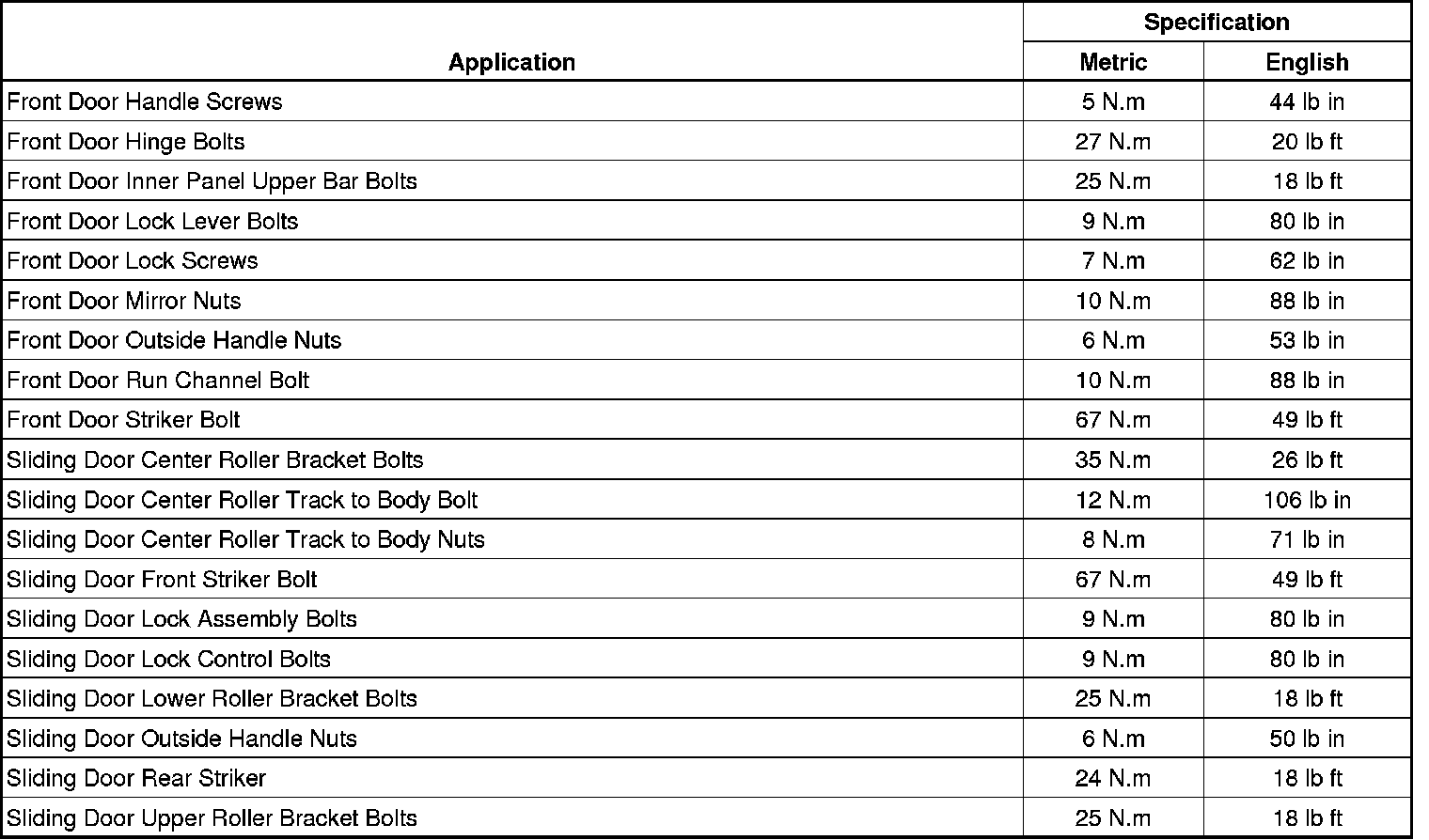 Fastener Tightening Specifications