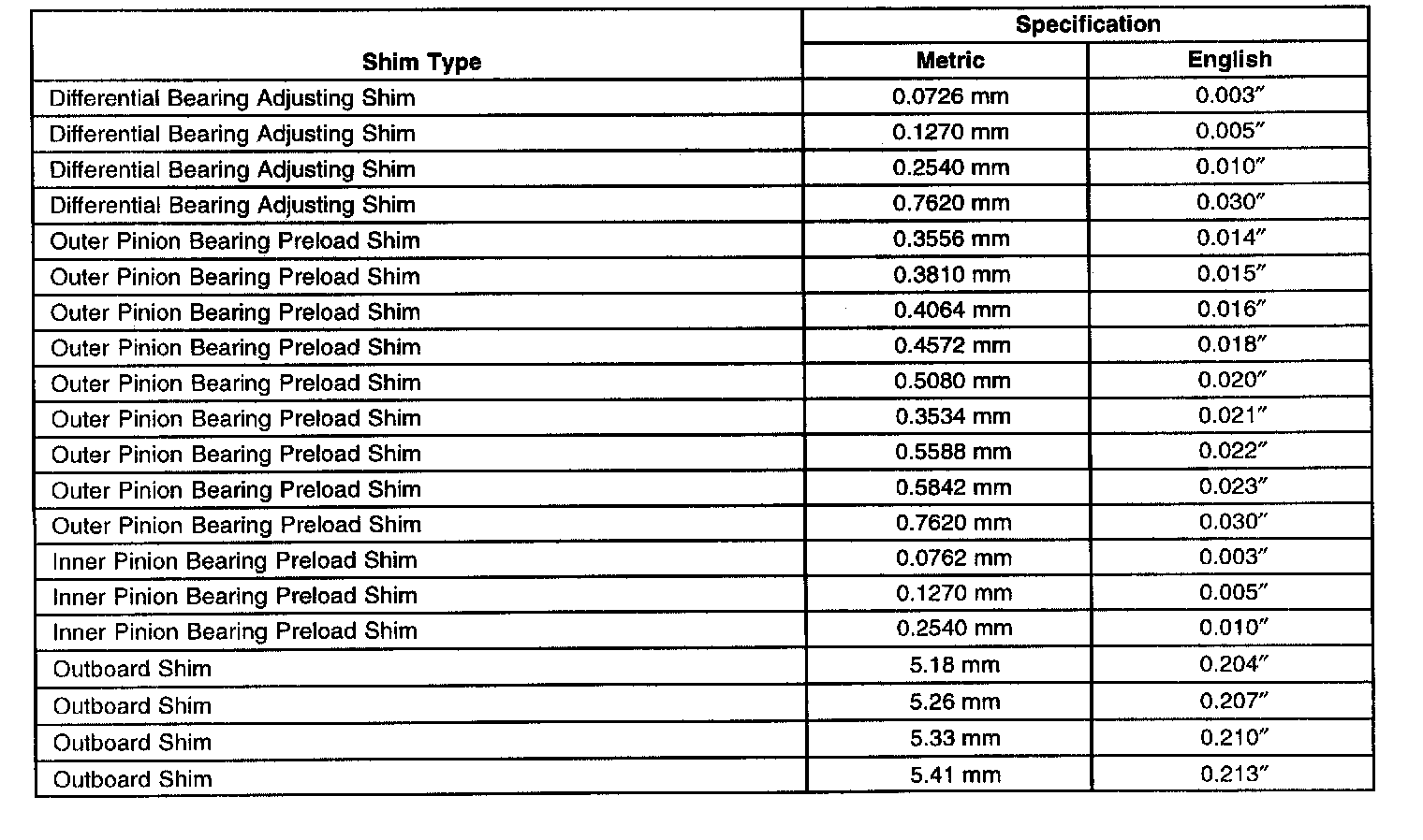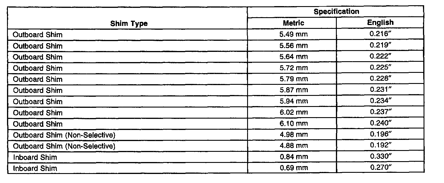 Spacer and Shim Specifications