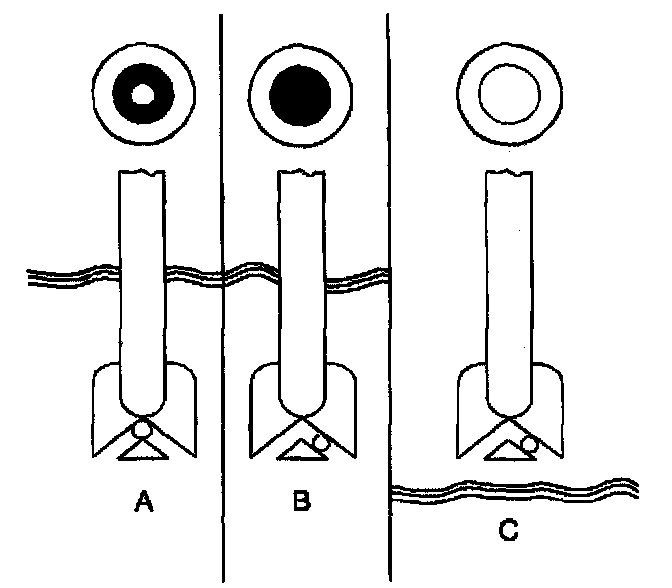 ^ A battery showing a green dot in the hydrometer (A), does not need to be charged unless the J 42000 battery tester has shown that the battery needs to be charged.