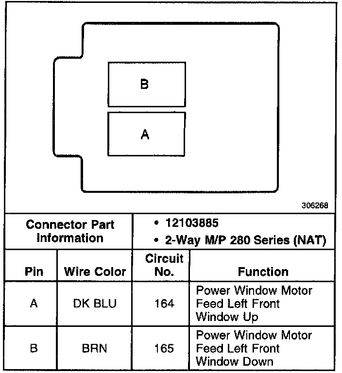 Power Window Motor LH Front Connector: