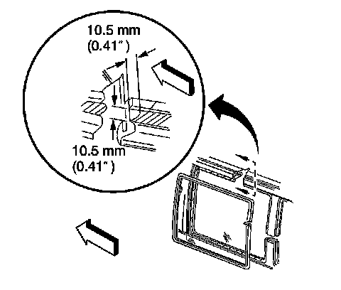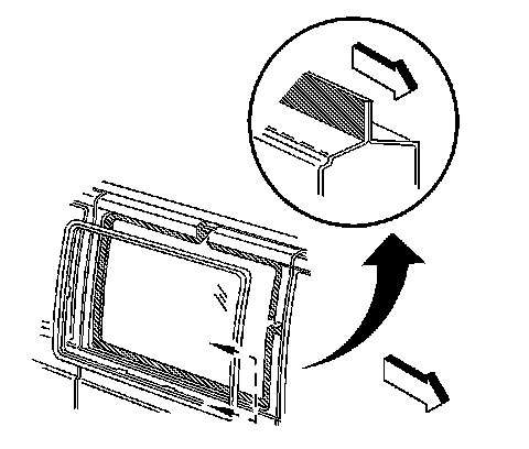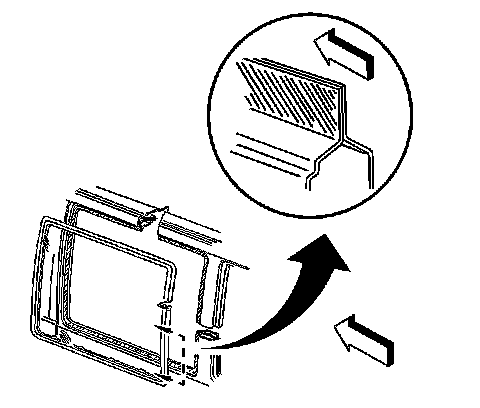 10. Install the reveal molding to the edge of the stationary window. If the original reveal molding is damaged it must be replaced, if equipped.