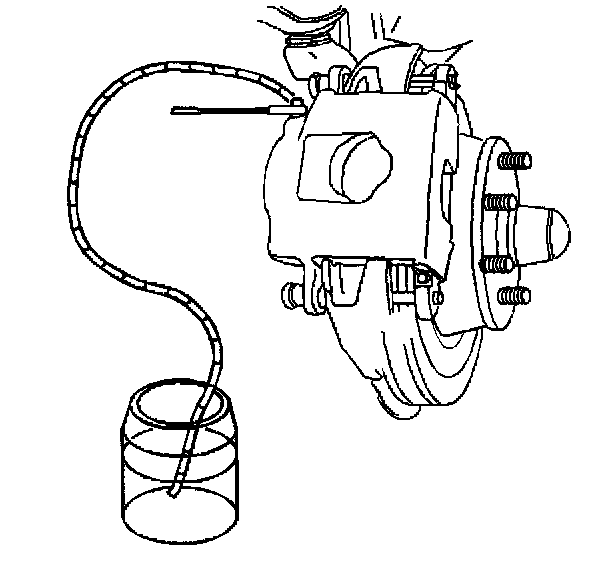 10. Immerse the opposite end of the hose into a container partially filled with clean brake fluid.