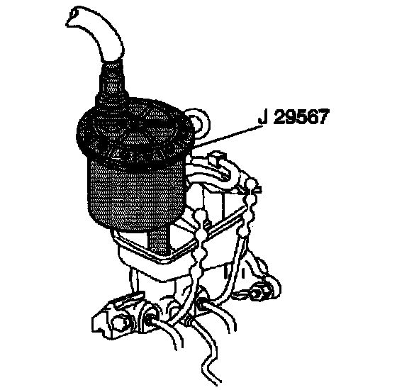 16. Fill the master cylinder to the proper level. Refer to Master Cylinder Reservoir Filling.