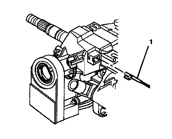 9. Remove the electronic lock module assembly (1) from the steering column housing assembly.