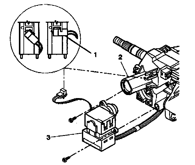 5. Remove the 2 tapping screws from the ignition and key alarm switch assembly (3).