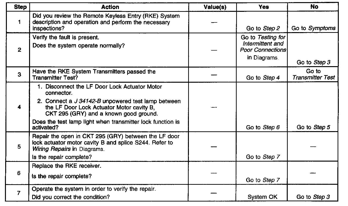 Door Lock Inoperative Using Transmitter - LF