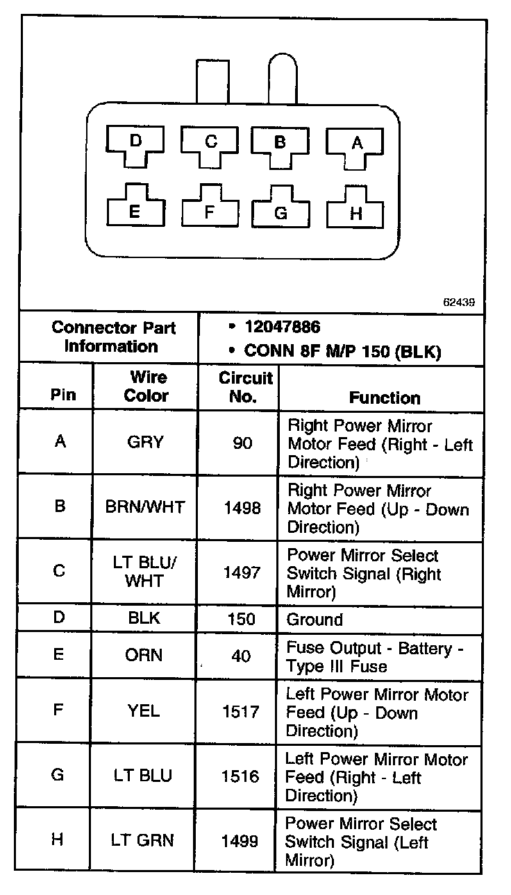 Power Outside Rearview Mirror Remote Control Switch Connector: