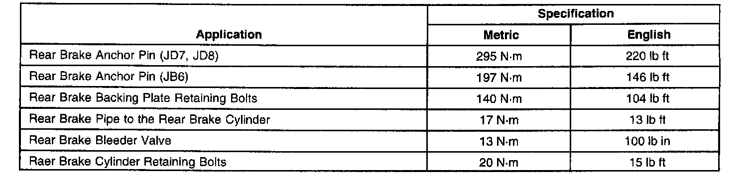 Drum Brake System: Specifications