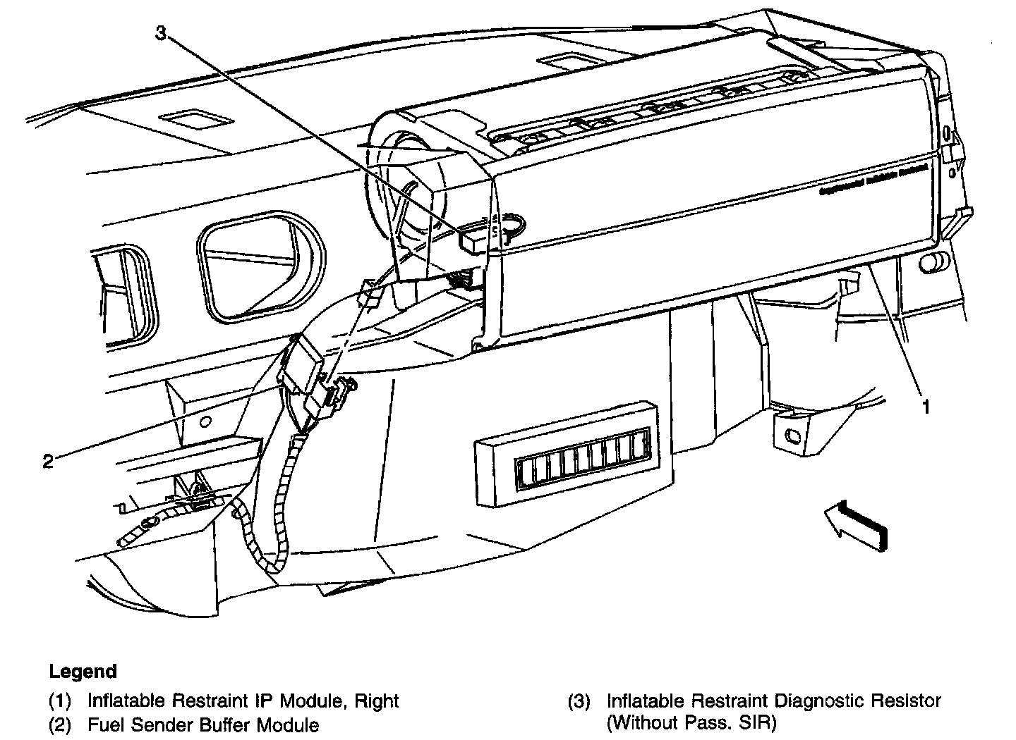 Below the right side of the IP, on the inner knee bolster