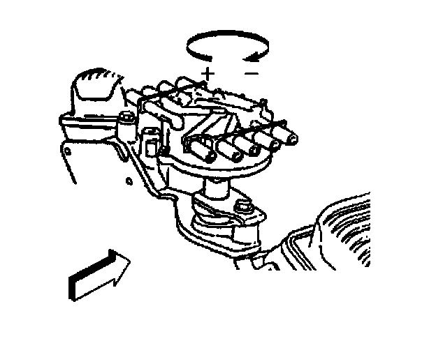 6. As the distributor is being installed, observe the rotor moving in a clockwise direction about 42 degrees.