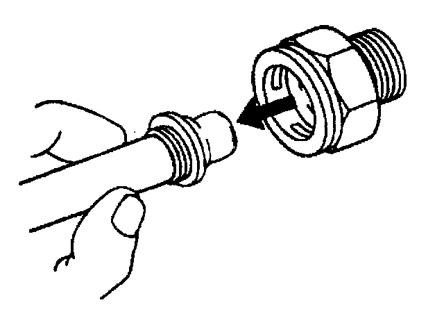 11. Do not use the plastic cap on the cooler line in order to install the cooler line into the fitting.