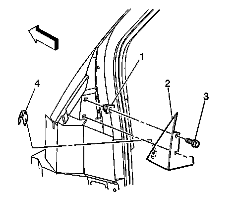 3. Pull the applique (2) away from the filler panel in order to release the retainer (4).