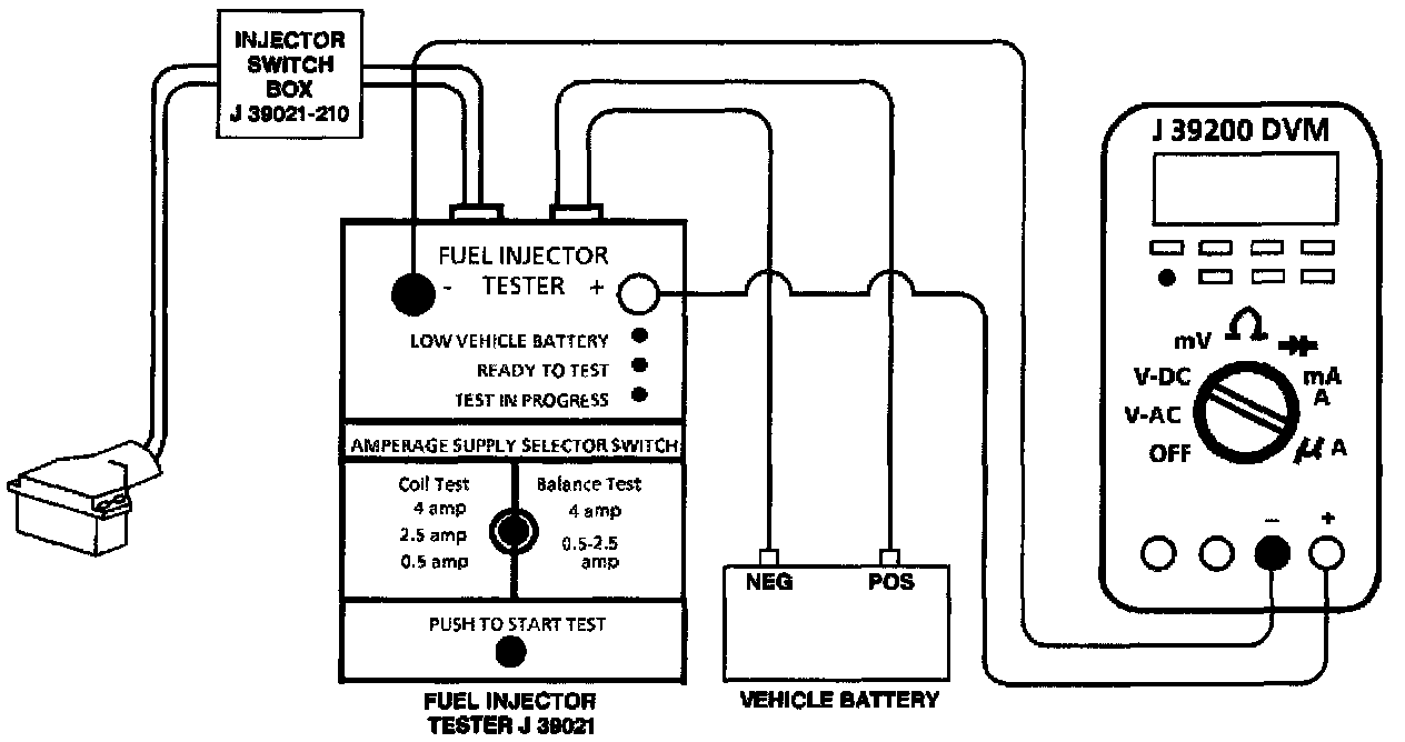 2. This step is used to set up the injector coil test. Also read the instructions included with the tools used for this test.