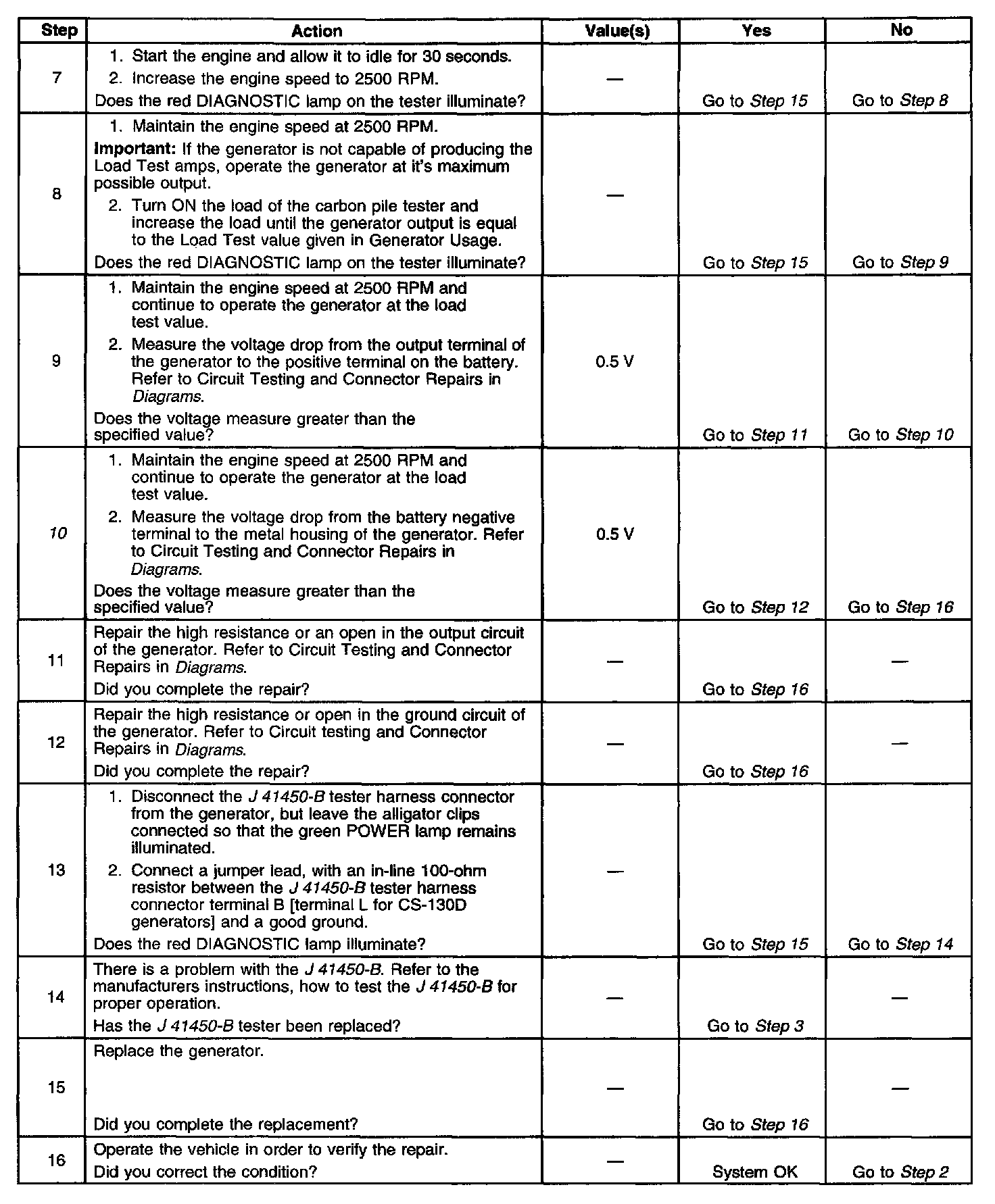 If the test has shown the generator to be OK, however the condition remains, test the [PCM/VCM] or its control circuit(s) to the generator.