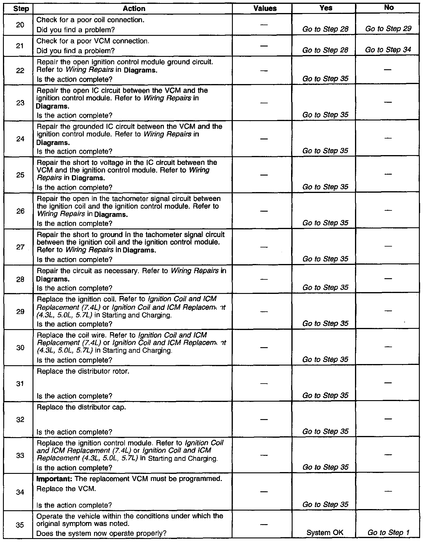 The numbers below refer to the step numbers in the diagnostic table.