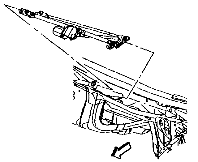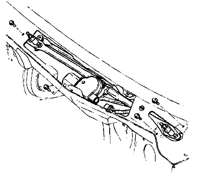 7. Remove the tour bolts retaining the wiper transmission.