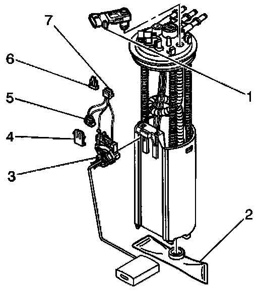 8. Disconnect the fuel level sensor electrical connector (7) from under the fuel sender cover.
