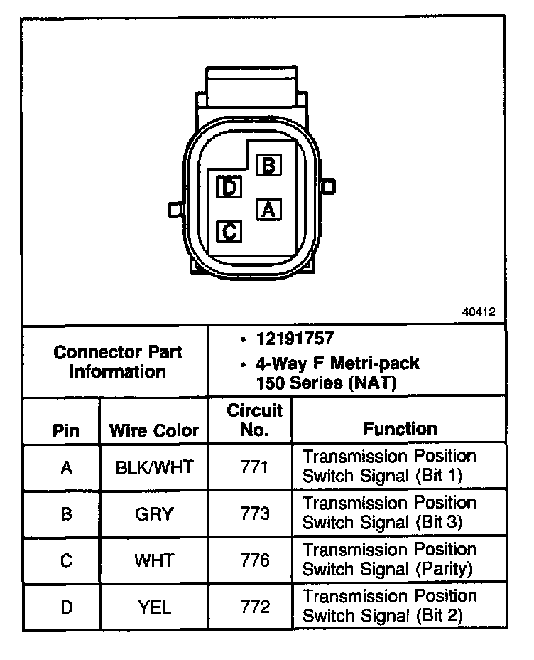 Park/Neutral Position Switch, C2 Connector: