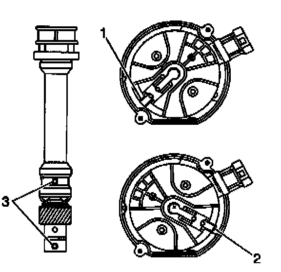 NOTE: The OBD II ignition system distributor driven gear and rotor may be installed in multiple positions. In order to avoid mistakes, mark the distributor on the following components in order to ensure the same mounting position upon reassembly: