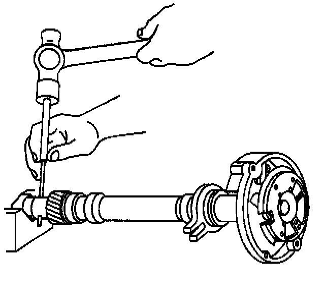14. Support the distributor drive gear in a V-block or similar fixture.