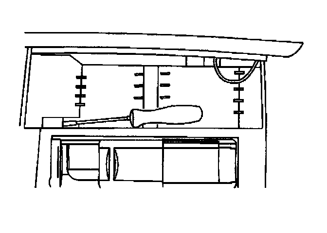 A shock sensor triggers the alarm when it detects a blow to the vehicle. It is located in the center floor console. There are two levels of alarms via the shock sensor: two horn blasts and the headlamp/parking lamps flash for nonthreatening blows to the vehicle or a full two-minute alarm for harder blows to the vehicle. Its sensitivity can be adjusted if more or less sensitivity is desired. If sensitivity is increased too much, it may give false alarms caused by wind gusts or other natural events that may shake the vehicle. The adjustment for the shock sensor sensitivity can be accessed through a hole in the forward wall of the main bin of the center floor console.