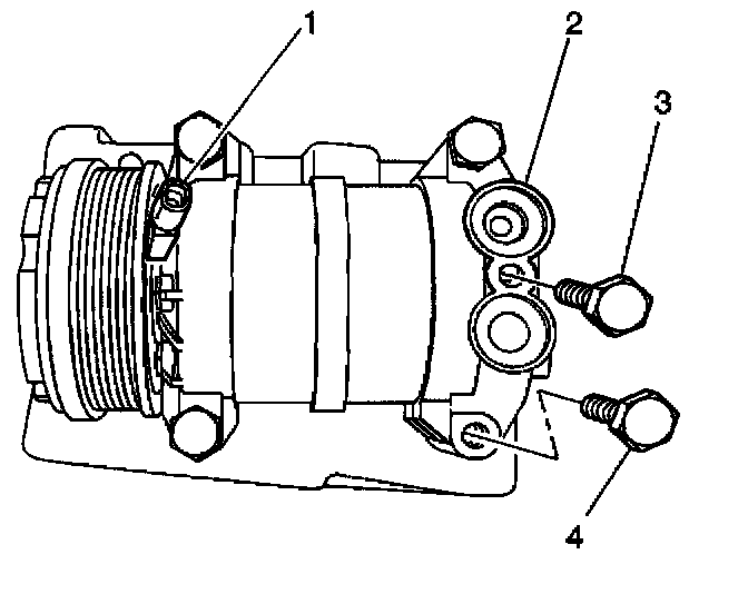 - Tighten the compressor bolts (4) to 50 N.m (37 lb ft).