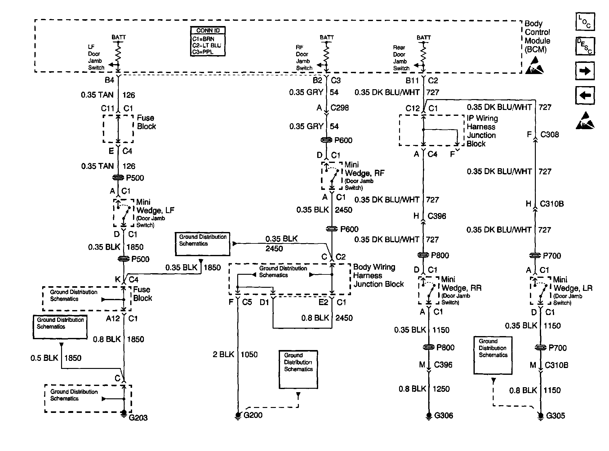 Body Control Module Schematics: Door Jamb Switches 4DR-Base: