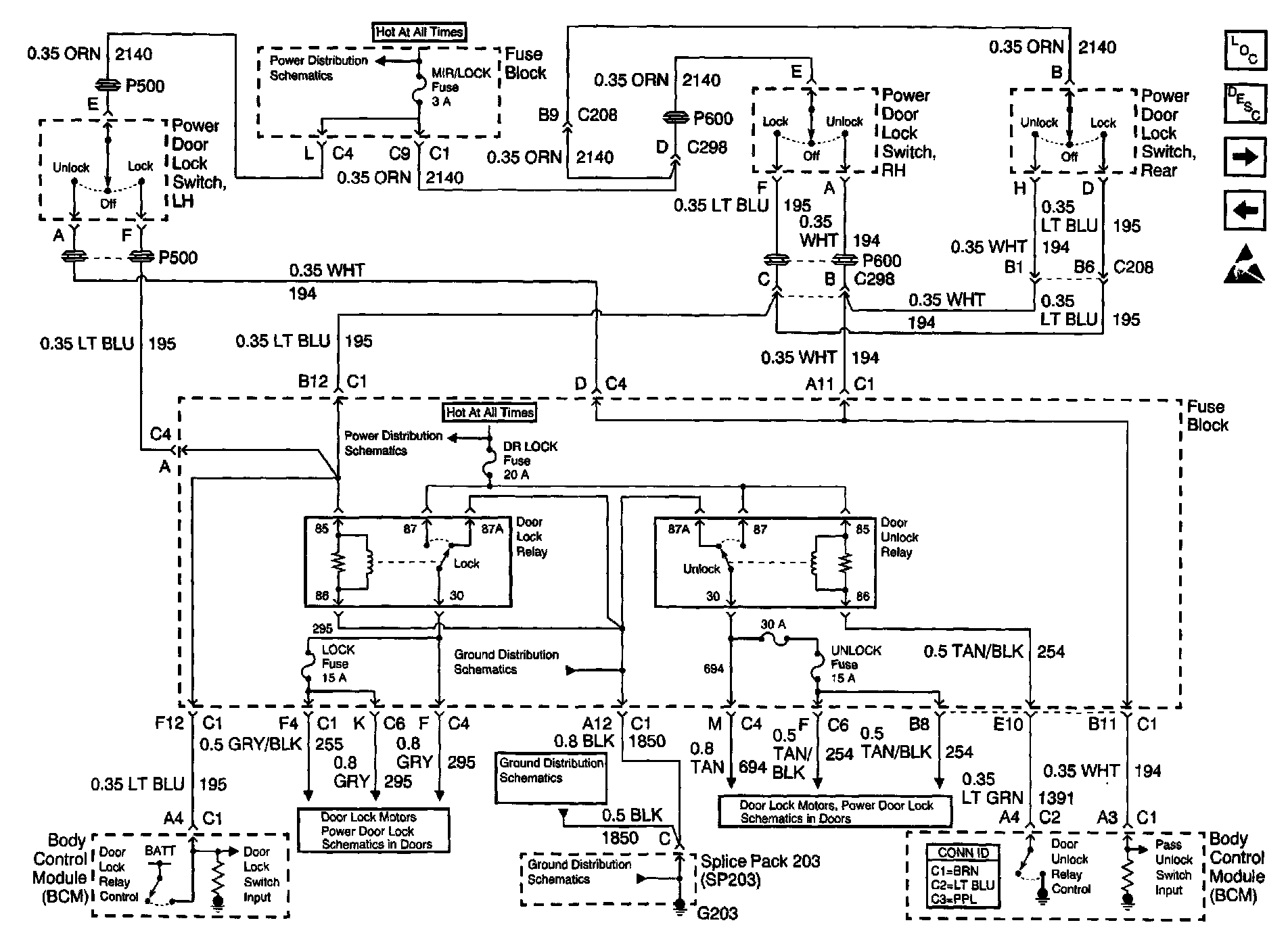 Body Control Module Schematics: Door Lock Switches And Relays-4DR-Base: