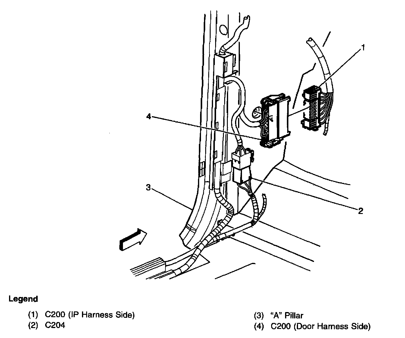 Harness Routing Views (LH "A" Pillar Behind Kick Panel):