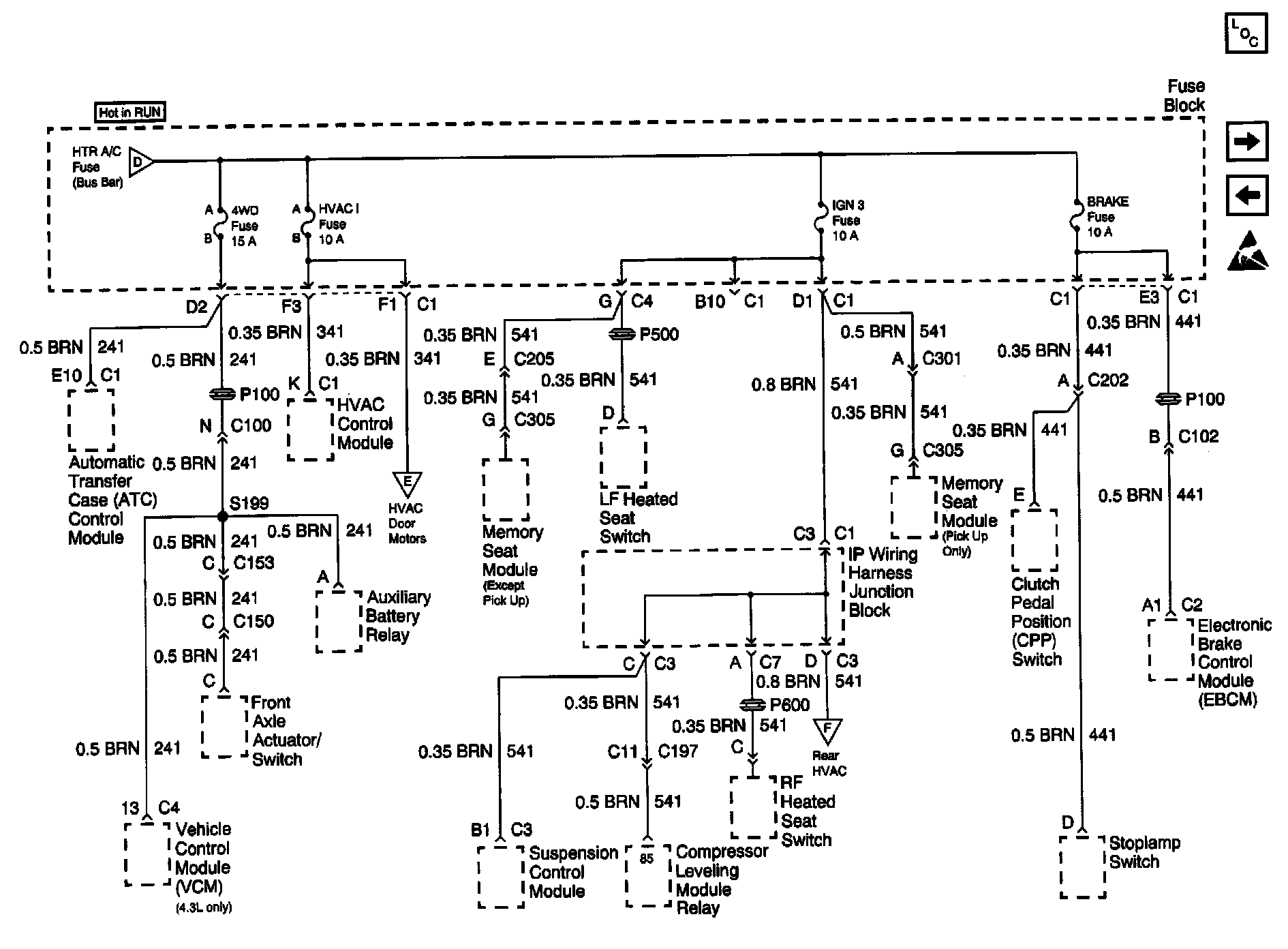 Power Distribution Schematics: ABS, Suspension Control Module, HVAC: