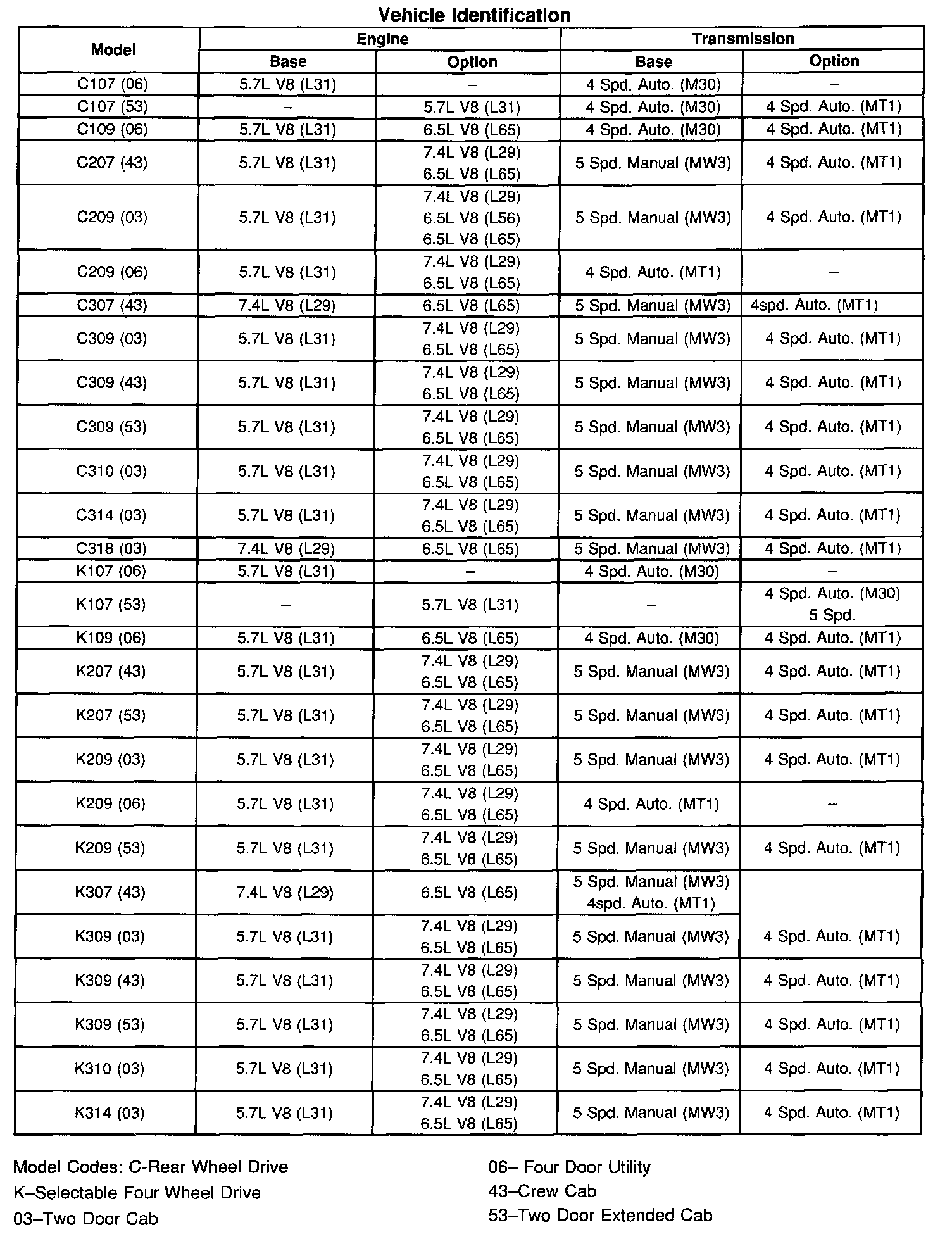 K Tahoe 4WD V8-5.7L VIN R