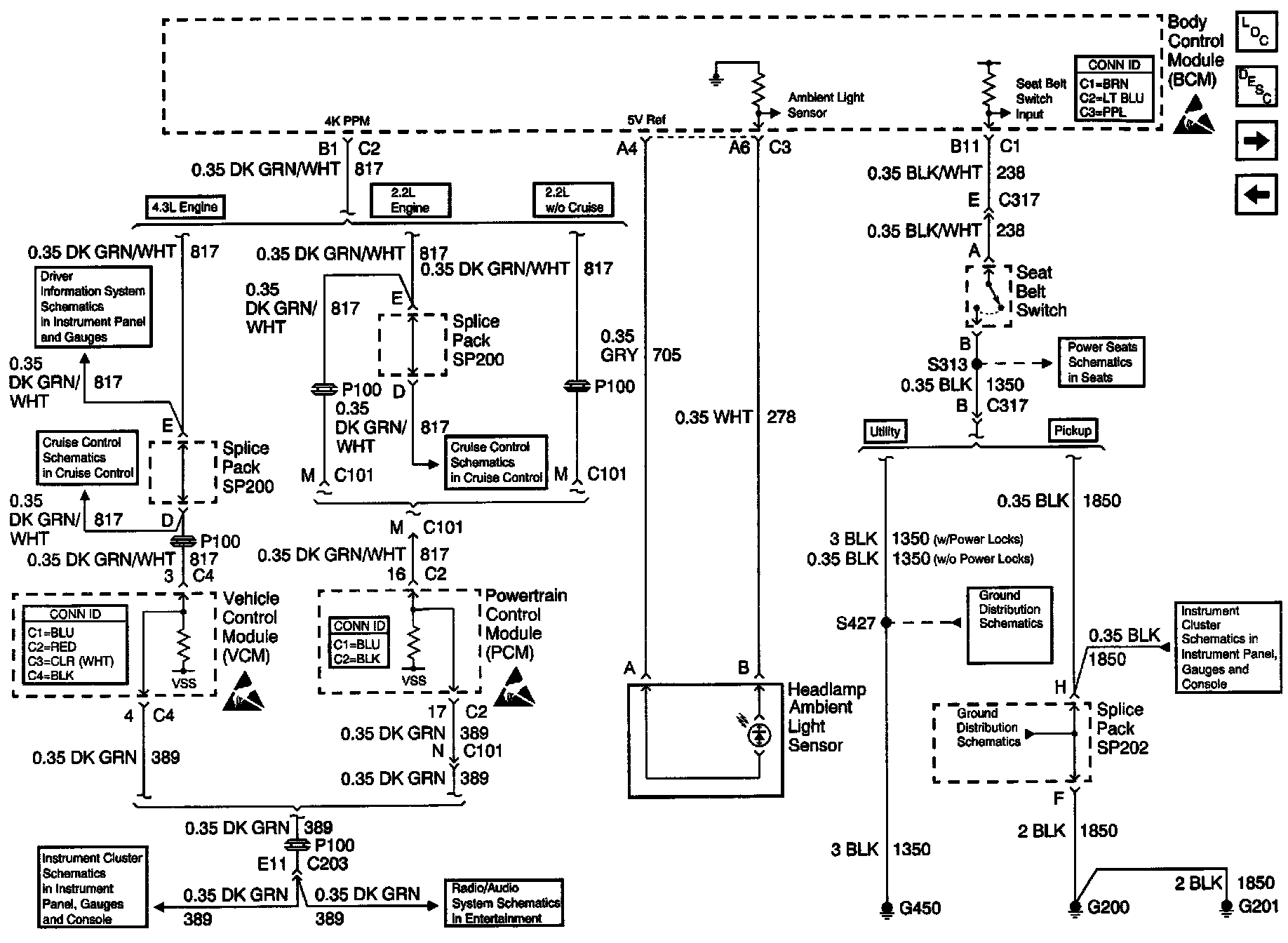 Body Control Module Schematics: Seat Belt Switch, Headlamp Ambient Light Sensor And PCM/VCM: