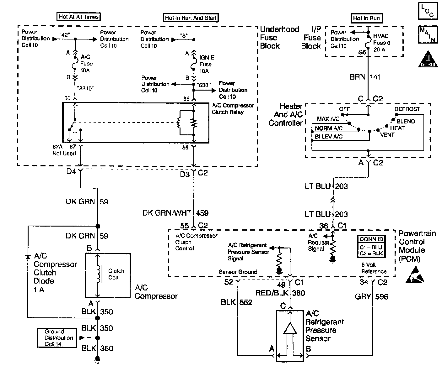 Refer to A/C Diagnosis for more information on the A/C refrigerant systems.